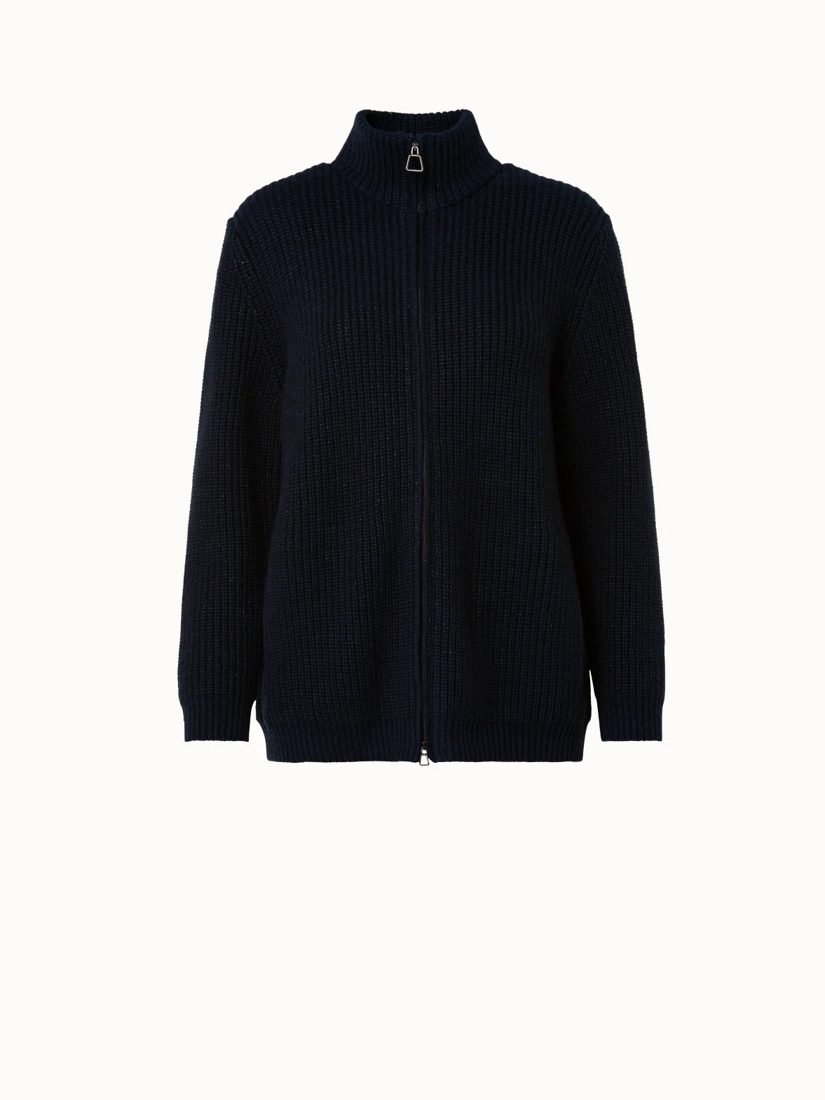 AKRIS Cashmere Cotton Sequins Zip Cardigan