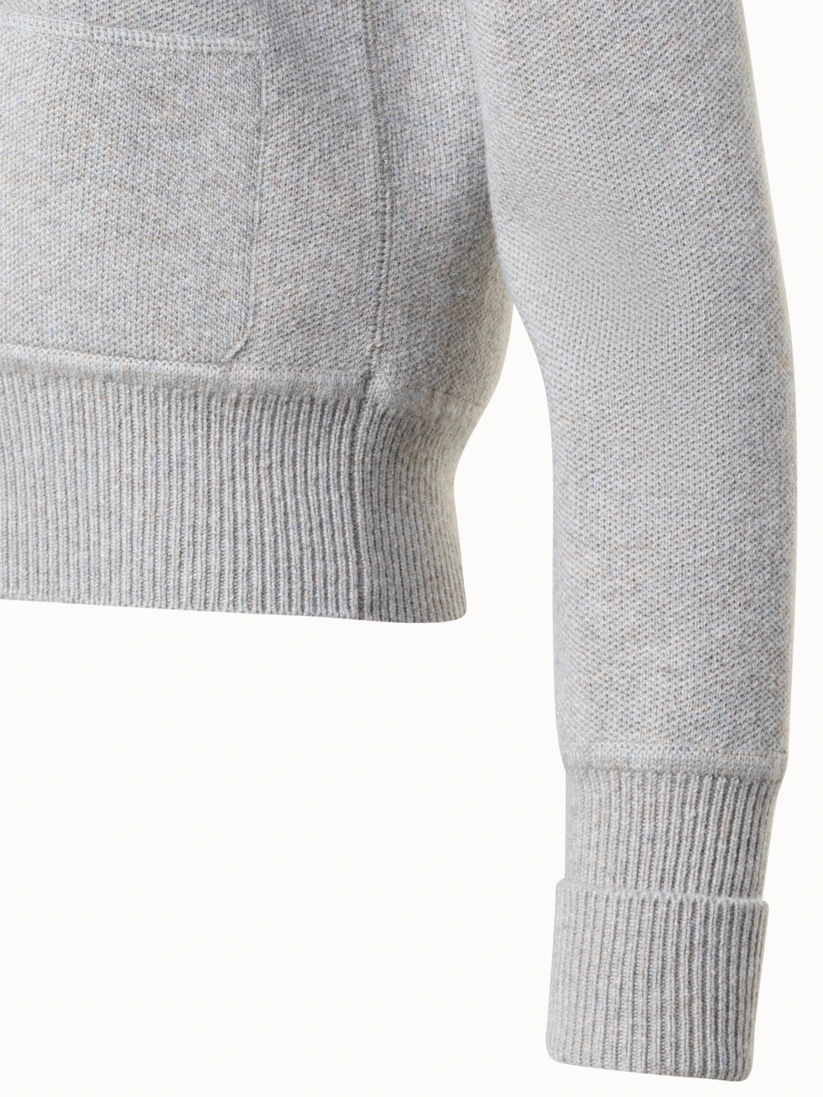 This short knit cardigan is crafted in soft cashmere piqué. It features a button closure, a stand-up collar, ribbed cuffs and hem, and patch pockets. This style will keep you comfortable throughout the year while maintaining a quiet luxury look.