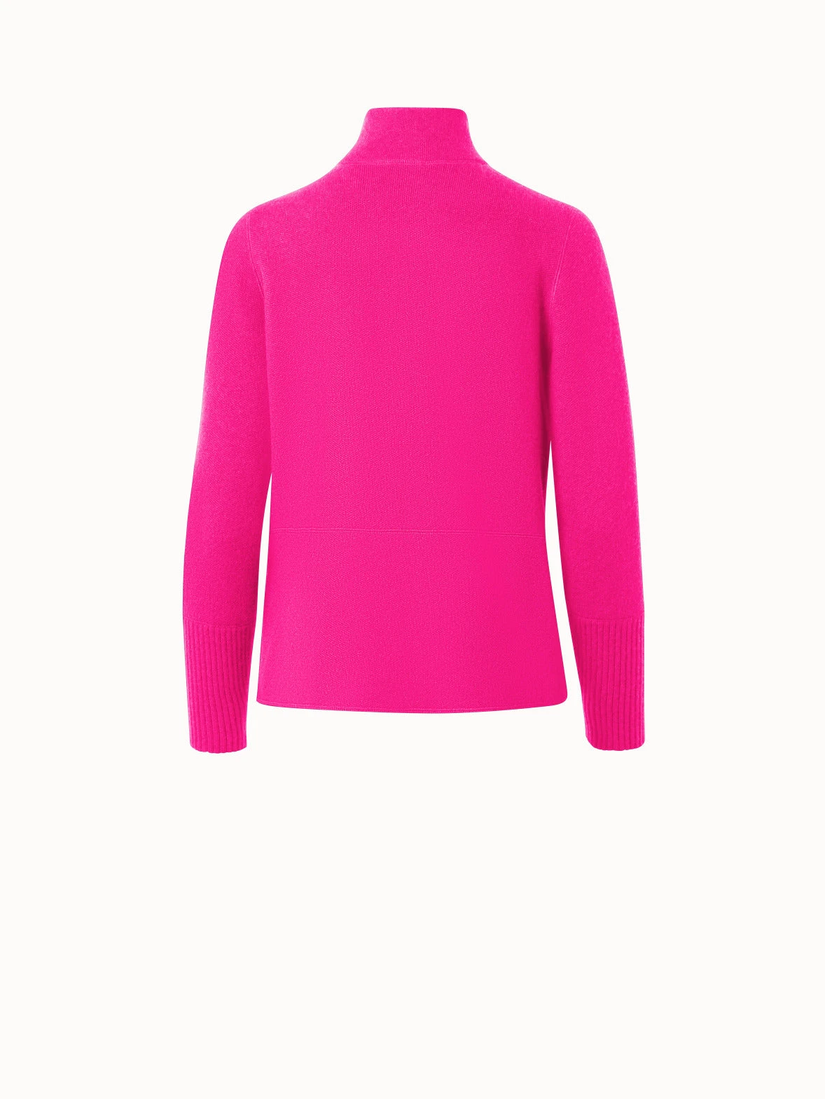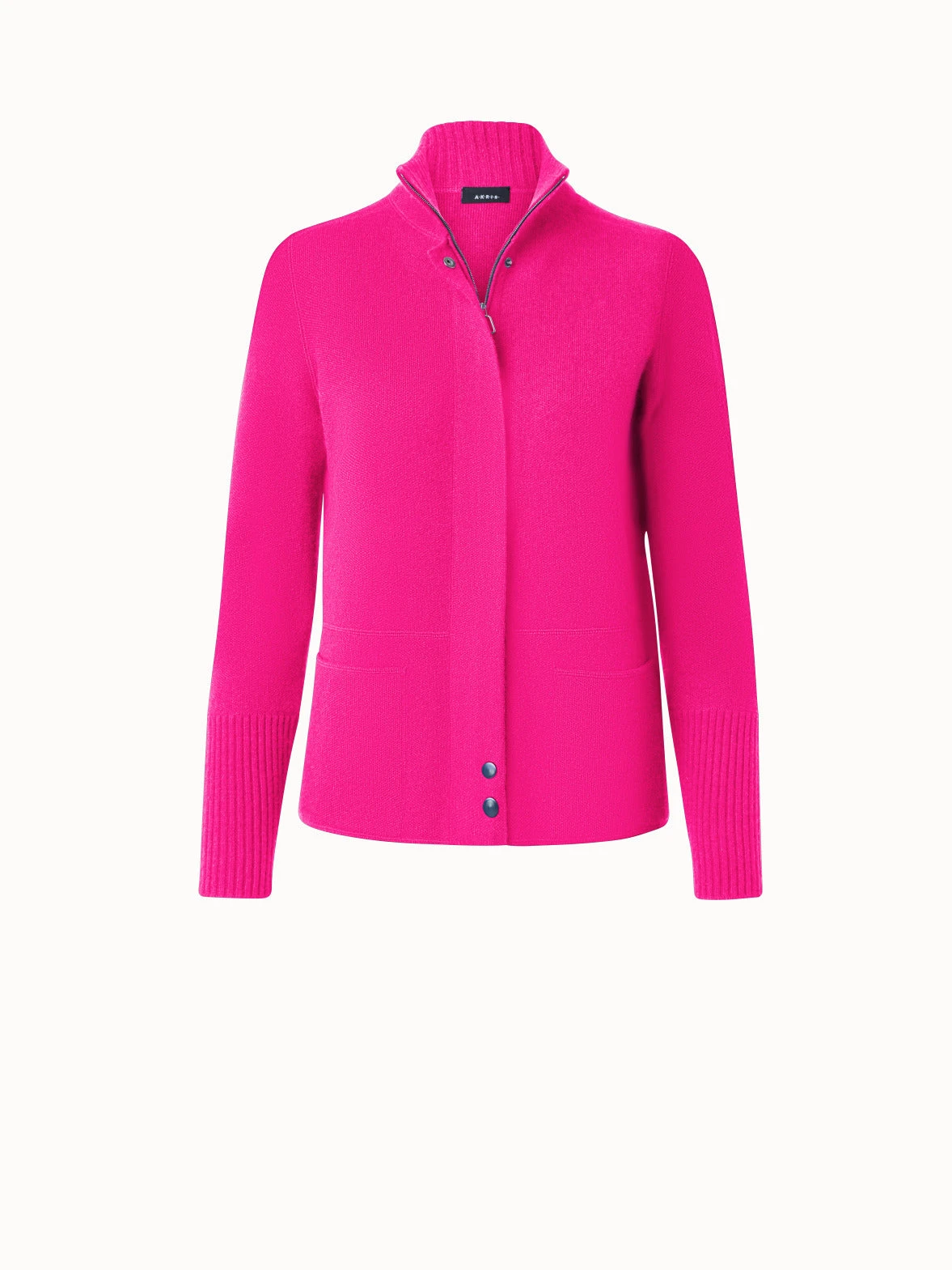 This signature Akris knit cardigan in precious cashmere piqué blurs the lines between knitwear and a jacket. The comfortable style is designed with a stand-up collar, zip closure, and pockets.
