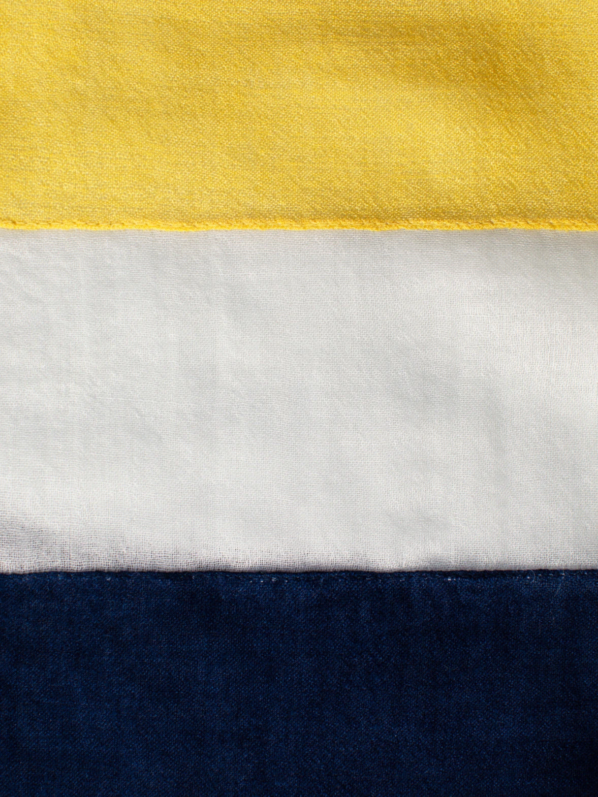 Brighten up your day with this colorful, geometric patchwork scarf. The perfect wrap to cozy up in, this scarf is neutral enough to complement any outfit, but also interesting enough to make you feel dressed up. Measures 70 x 200 cm / 27.6 x 78.7 in.