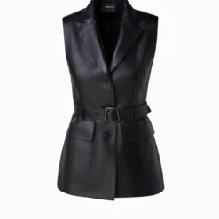 AKRIS Collared V-Neck Lamb Nappa Leather Belted Gilet