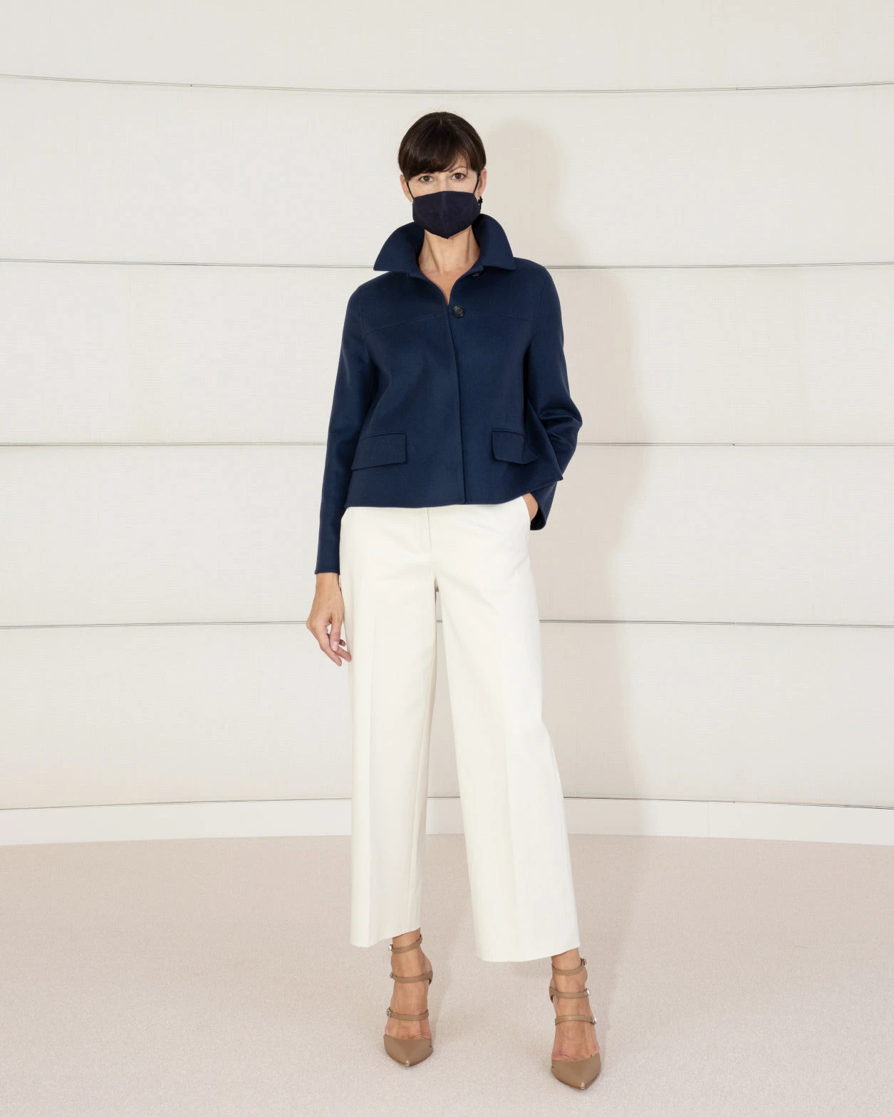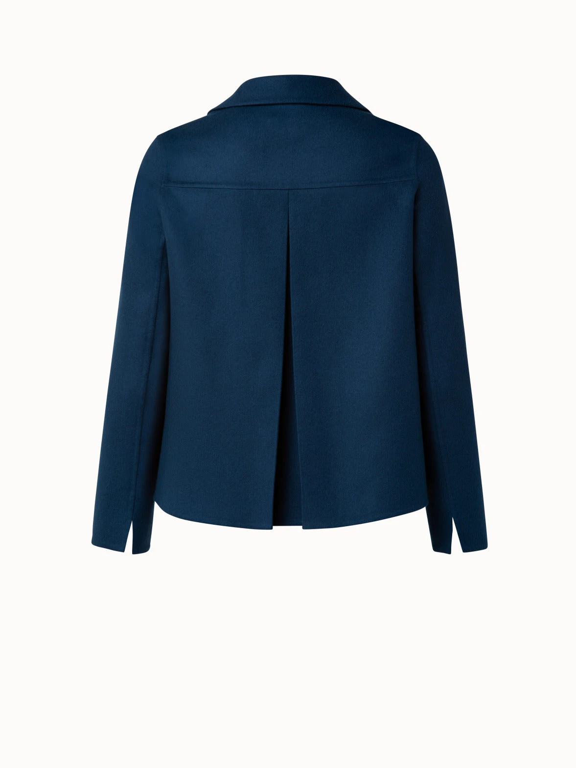 This sharp and tailored jacket pairs well over a pair of pants. Two top buttons decorate the front, while a covered panel hides the rest of the front buttons. Features flap pockets and a back box pleat.