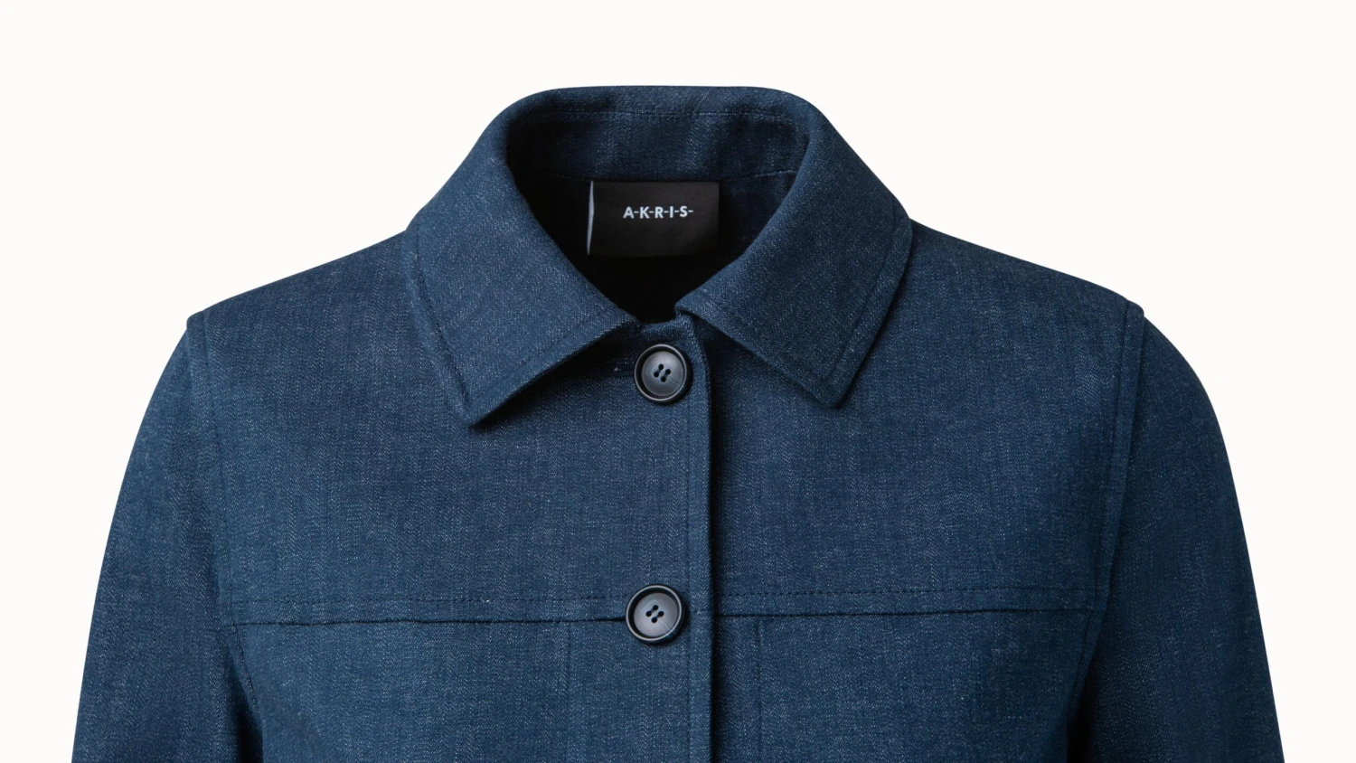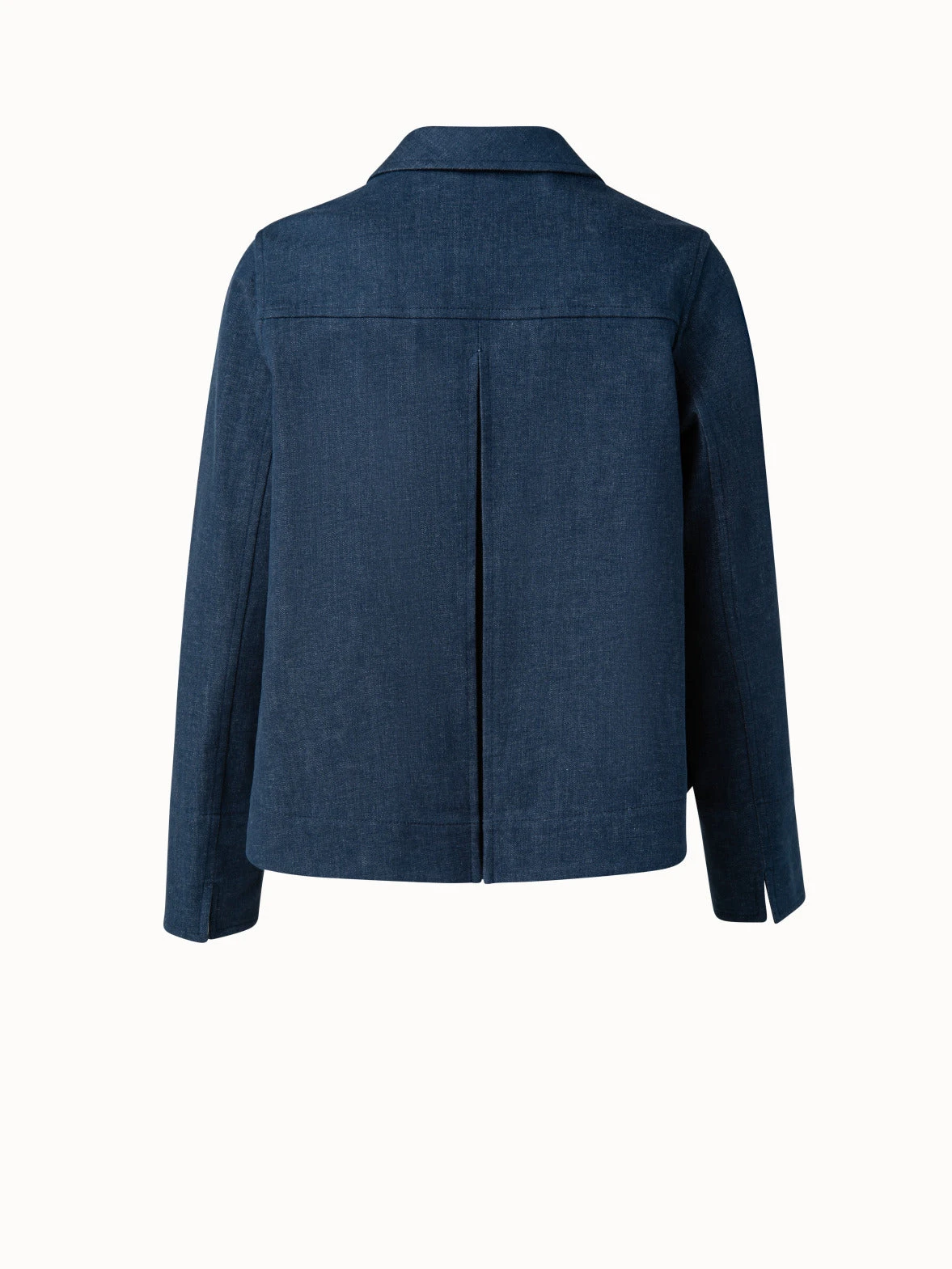 A collared hemline gives this relaxed denim jacket a refined twist. A must-have item for spring and summer, this trusted denim jacket will pair well with any outfit. Features two front snap buttons, back pleats, and flap pockets.