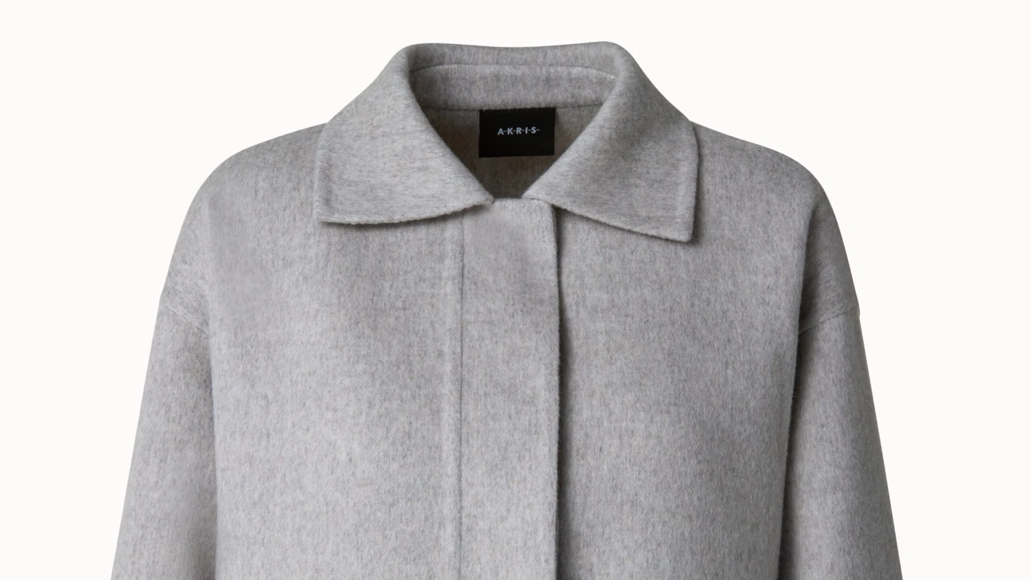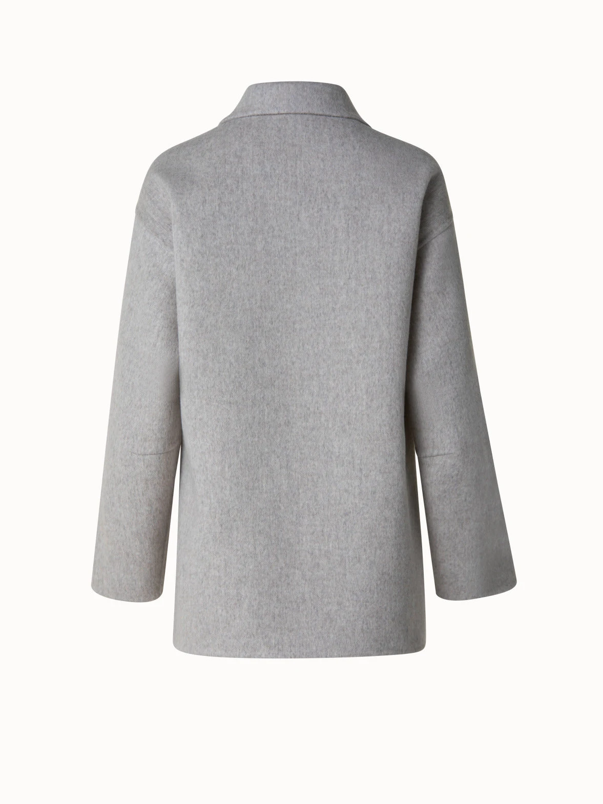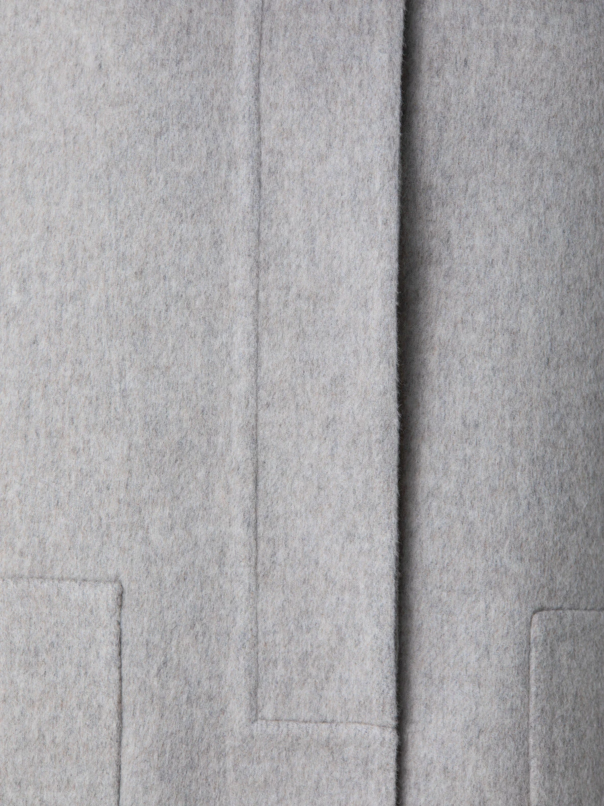 Oversized long jacket in cashmere double face with shirt collar, button closure and pockets. It has asymmetrical hem with longer back.
