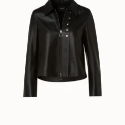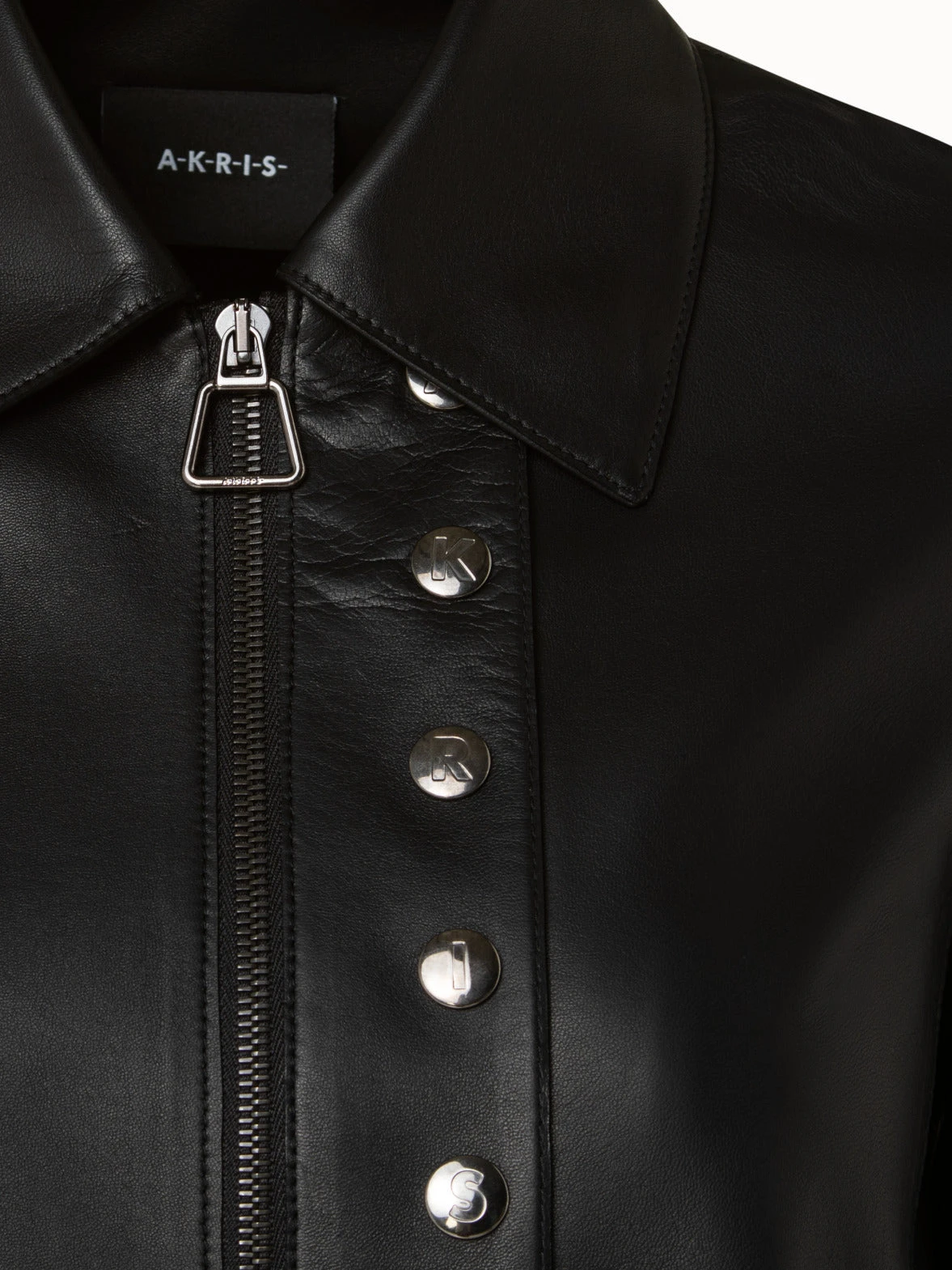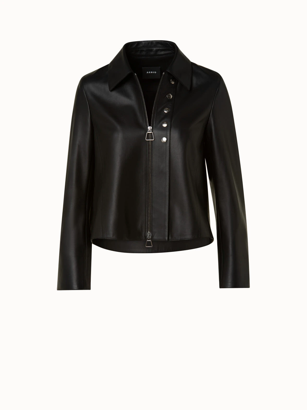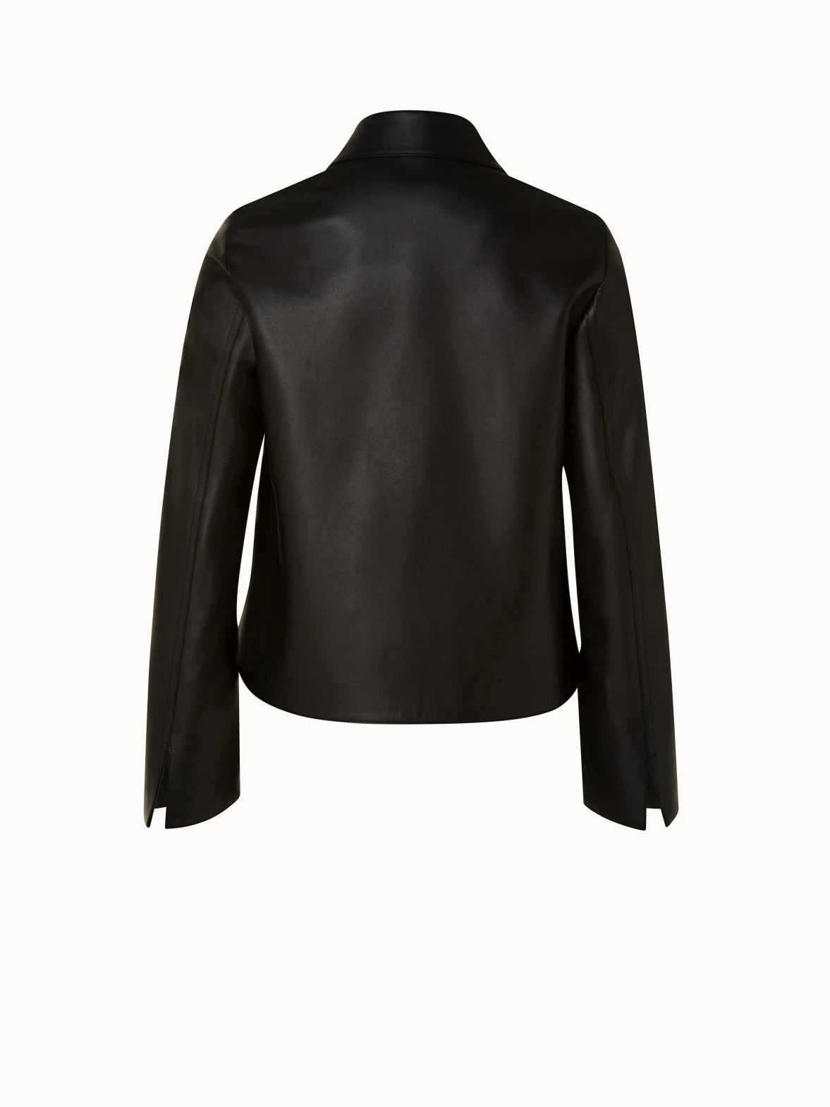 AKRIS Lamb Leather Jacket With Shirt Collar And Button Detail