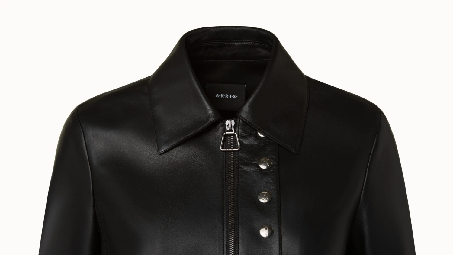 The Akris Gabi jacket is crafted from butter-soft lamb nappa leather. This contemporary jacket is tailored in a boxy shape and features a shirt collar with button details, a discreet dark metal zip, pockets and long sleeves with sharp back sleeve slit.