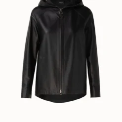 AKRIS Lamb Nappa Leather Zip Hooded Jacket