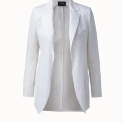 AKRIS Long Cotton Organza Striped Jacquard Jacket