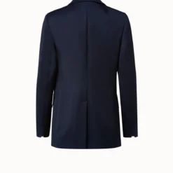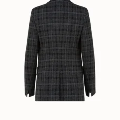 This long jacket perfectly complements a longer torso. Subtle stripes add an interesting detail. Features front buttons and pockets.