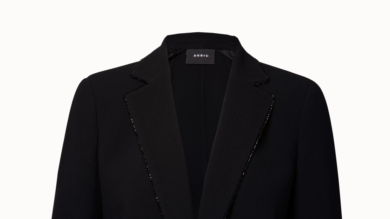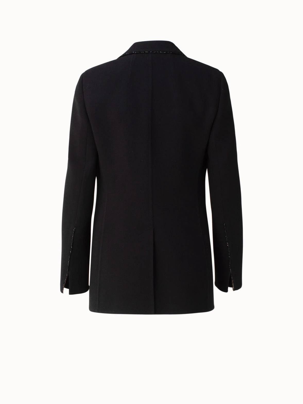 AKRIS Long Double Face Wool Jacket With Swarovski Trim