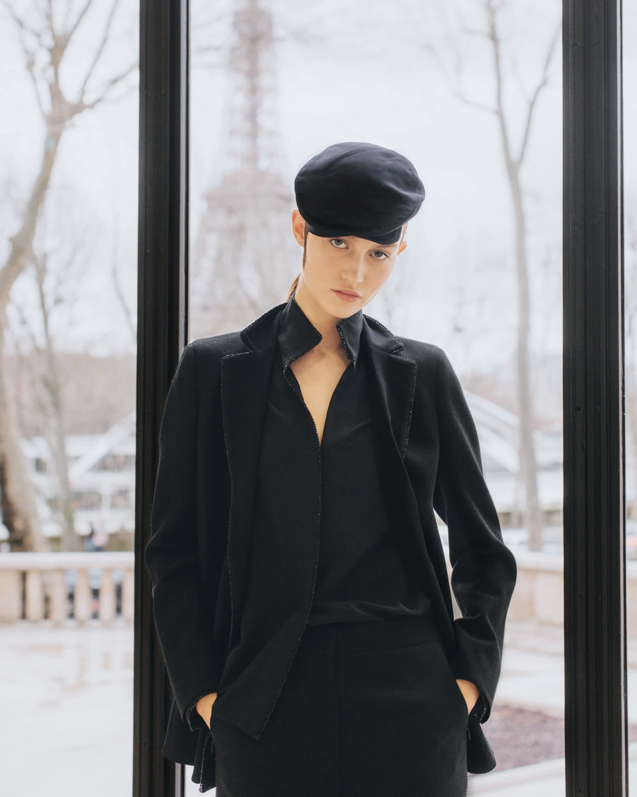 Soft but structured, this jacket has an elongated lapel collar that will automatically dress up any look. A hint of sparkle from the Swarovski trim adds a refined element to this luxe casual piece.