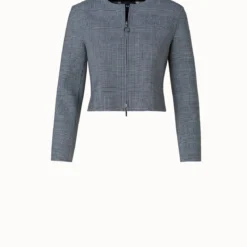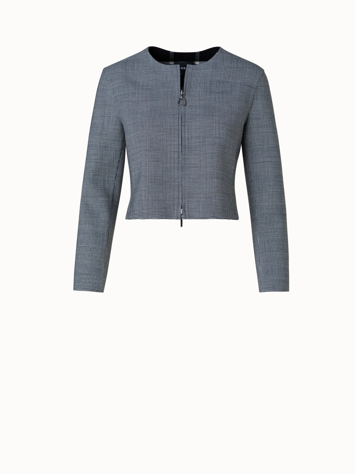 This Akris jacket Pippa is crafted in wool stretch double-face, showcasing two check patterns in an elegant, reversible style. This cropped style features a round neck, tailored cut, and long sleeves. The double-zip completes this versatile style.