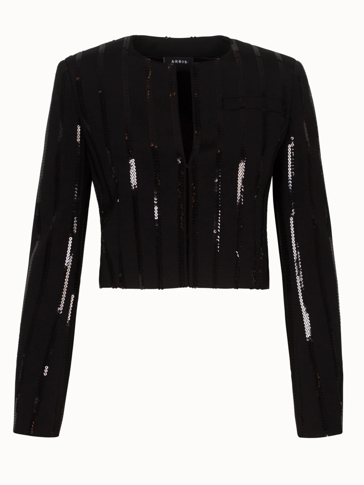 AKRIS Short Jacket In Silk Stretch With Sequin Stripes