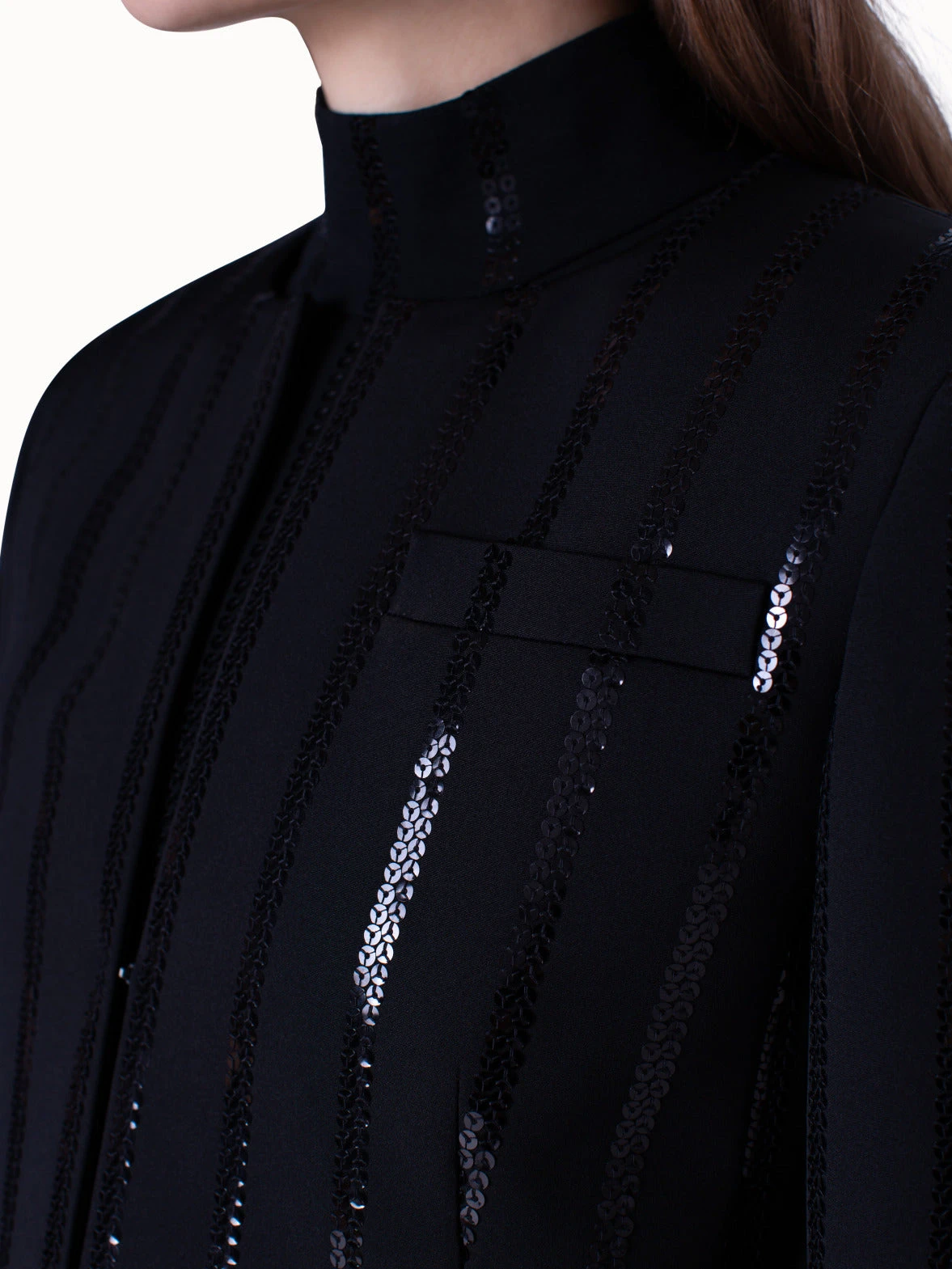 Made from silk stretch and embellished with sequin stripes, this jacket will keep you comfortable and stylish.