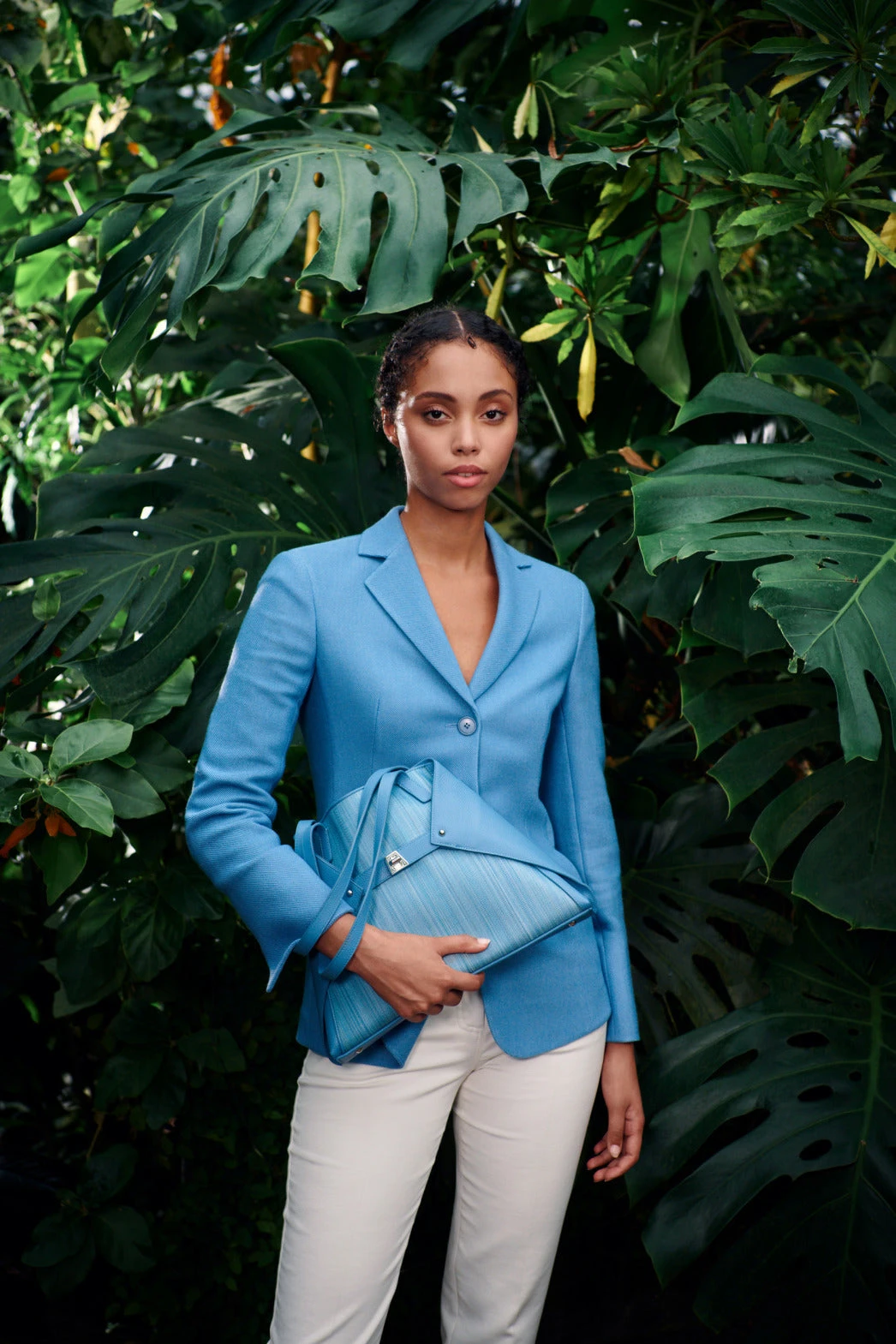This Akris jacket Nat is crafted in a comfortable wool and cotton blend stretch piqué. The classic three-button design features an elegantly tailored lapel collar. Fine sleeve slits and seam pockets create a sleek look that will effortlessly take you from the office to the weekend. The light weight and breathability of the fabric make this a jacket a great choice all year round.