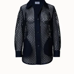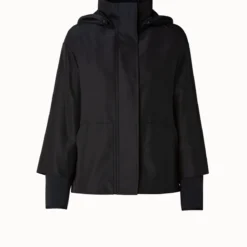 “This Akris jacket Lucia is crafted in wool double-face, making it an ideal choice for everyday wear. It features a faux double-breasted design with a hook closure. The peak lapel creates a sophisticated look that is complete by flap pockets.