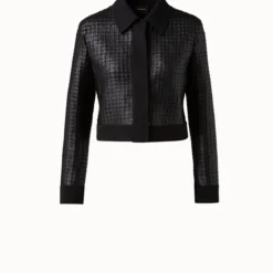 AKRIS Wool Double-Face Short Jacket With With Faux Leather Superposé Grid Embellishment