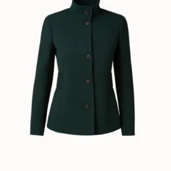 This Akris jacket Laurenz is crafted in sophisticated wool stretch double-face. It features a mock neck and button closure for a timeless modern look. The elastic martingale elegantly hugs the waist.