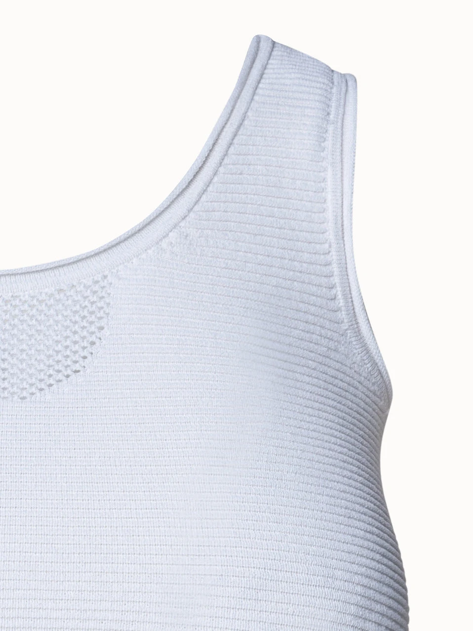 This Akris punto top is an sleek sports style that will keep you chic, cool, and comfortable when active. The top is crafted in an athletic bodycon knit made from a super stretch viscose blend. The cropped and sleeveless design make it perfect for warm weather in spring and summer, as well as high intensity activities.