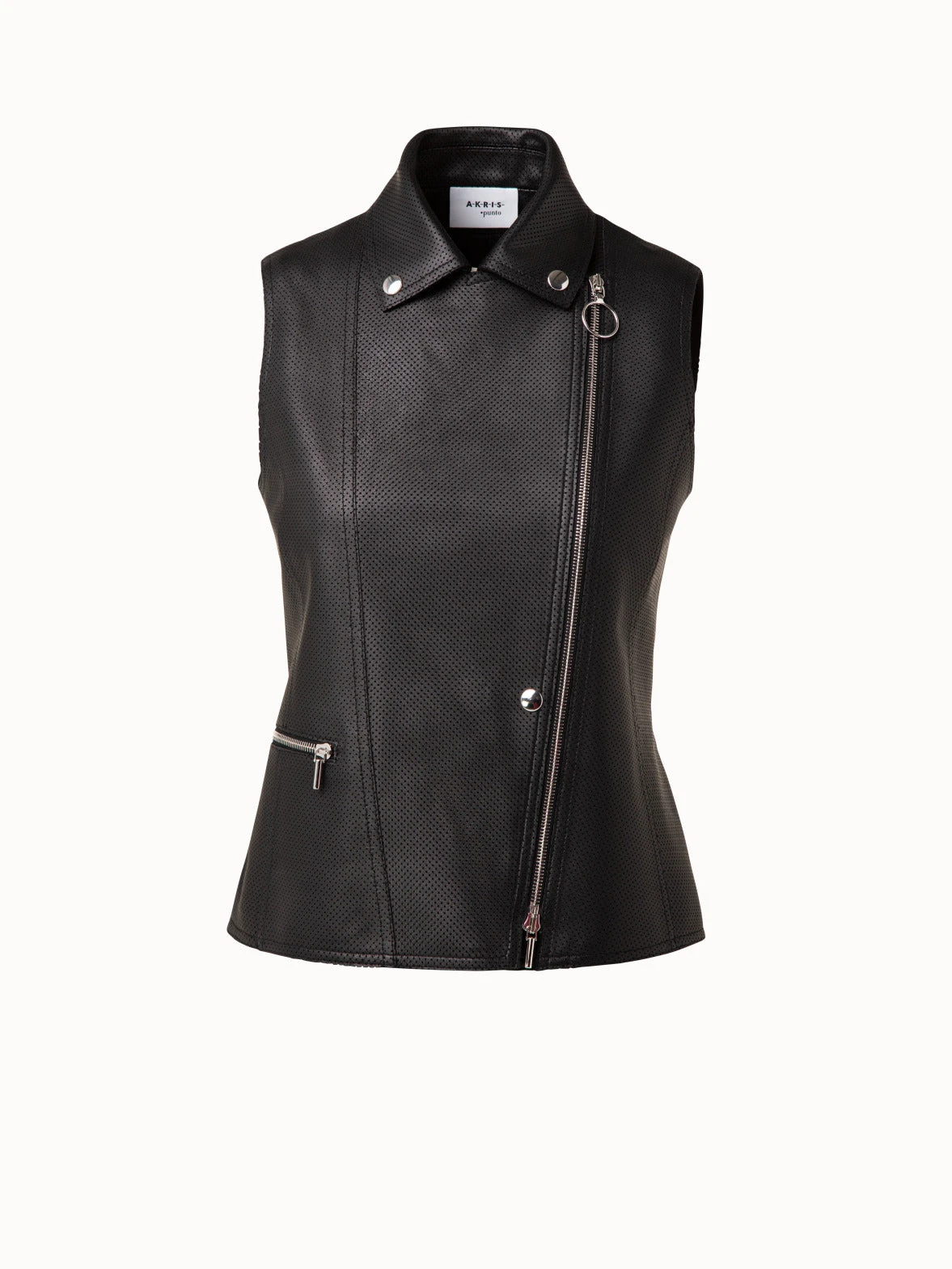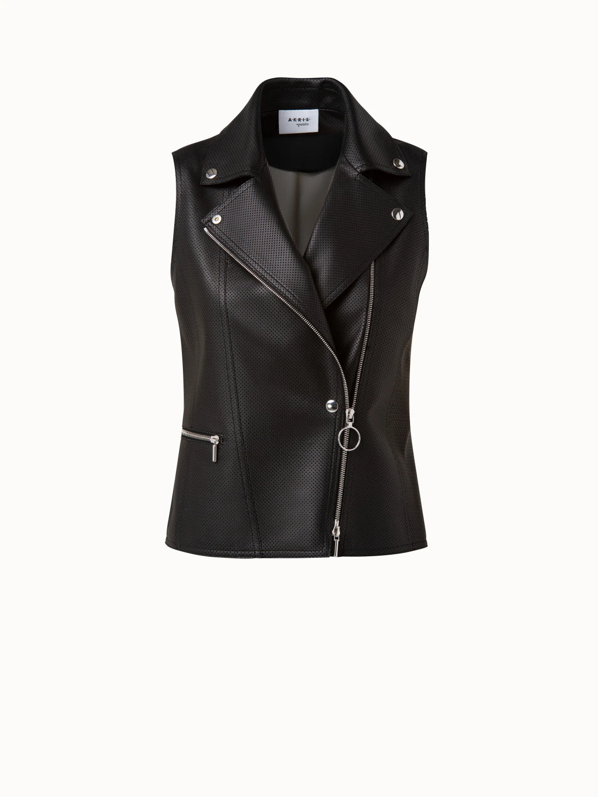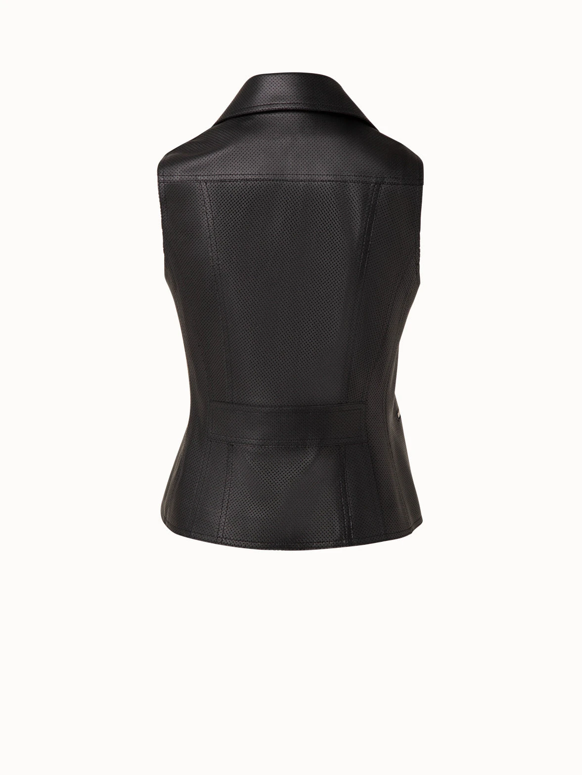 Biker Vest In Perforated Pin Dot Lamb Nappa Leather