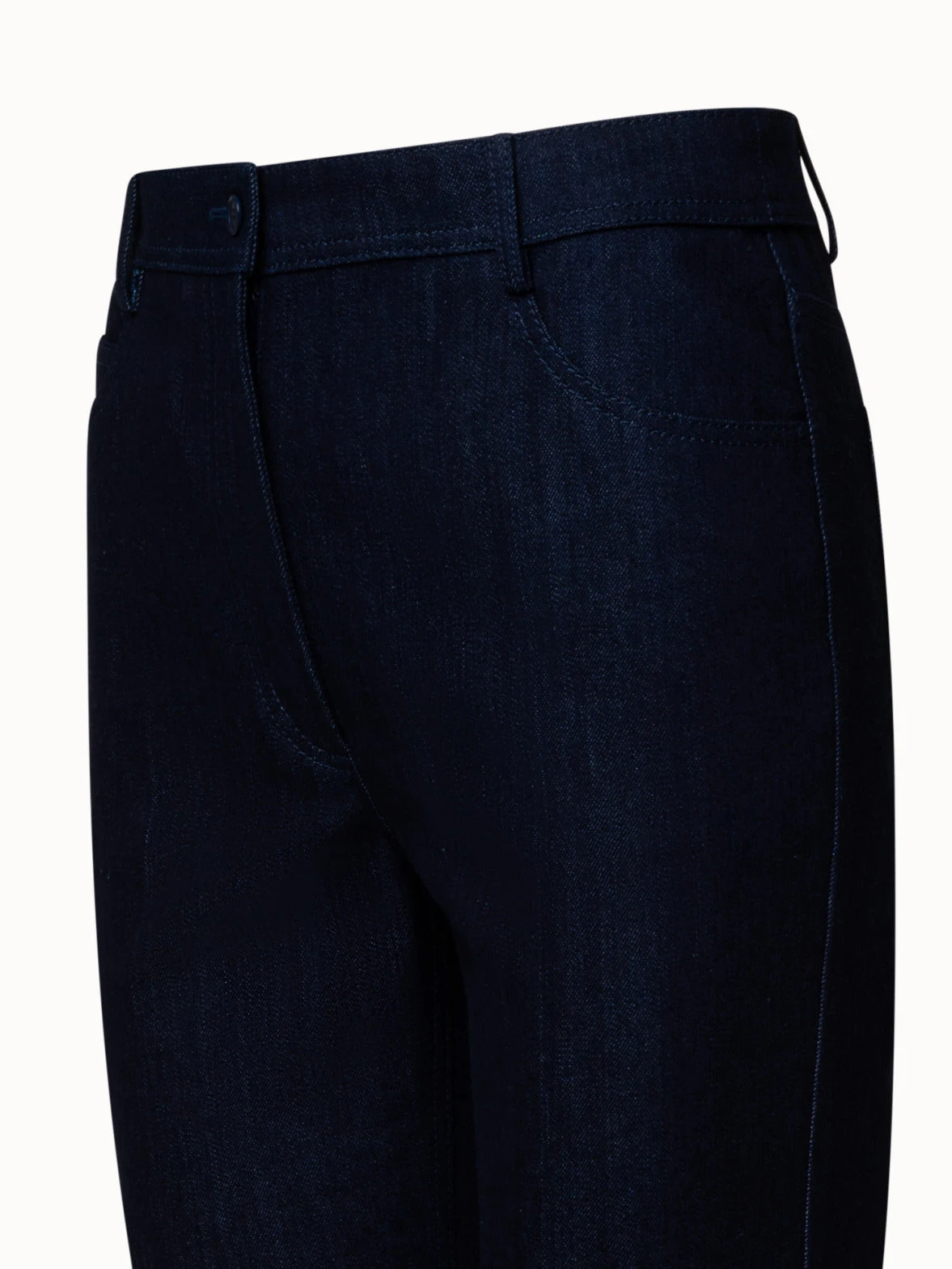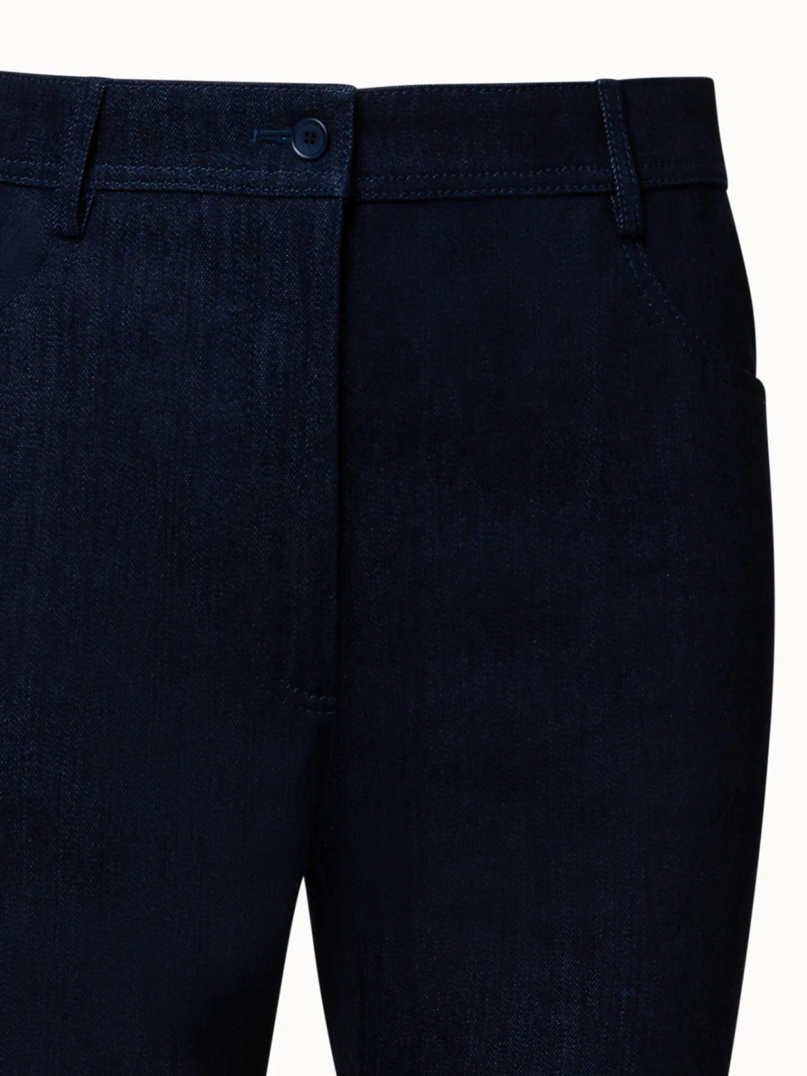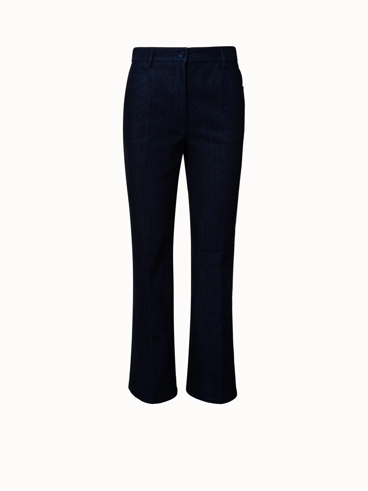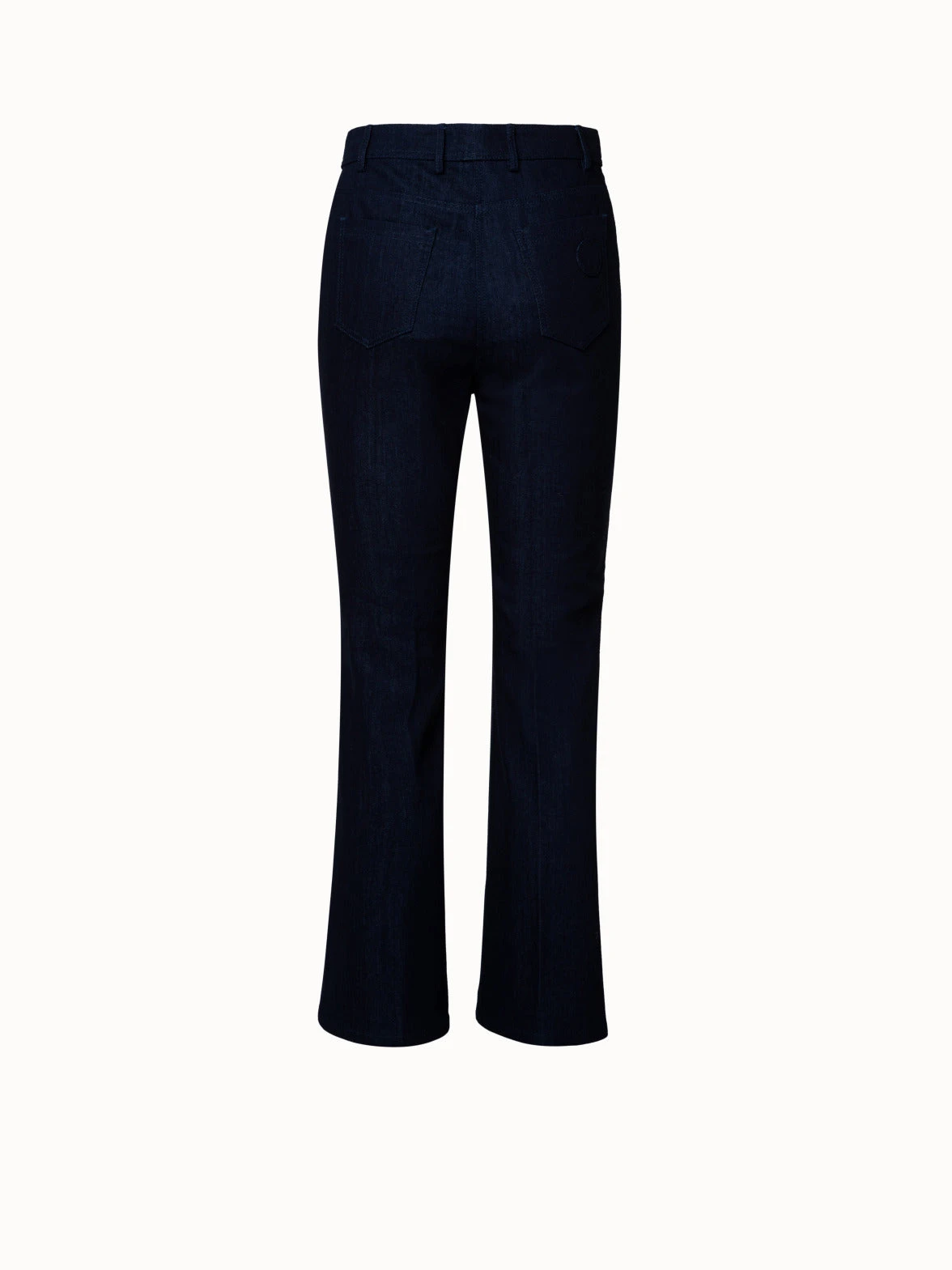These Akris punto pants Cali are a new take on a jeans look. They are crafted in a cotton stretch denim, creating a comfortable feel and casual look. These pants are cut with a cropped bootcut leg. They feature a front closure and five pocket design.