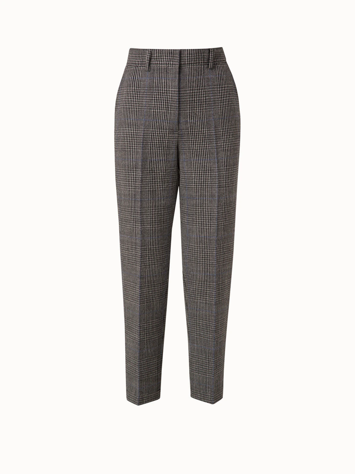 These Akris punto Feryn pants are crafted in a soft wool fresco with Prince of Wales check. They are cut a mid-rise and tapered, ankle-length leg that creates an elegant silhouette. Front slash pockets and back welt pockets add functionality. Features belt loops and a front zip closure.