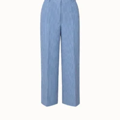 These Akris punto Chiara pants are a versatile style for spring and summer. Crafted in striped cotton stretch seersucker, they are easily dressed up or down while ensuring comfort. These high-waisted pants are cut with a cropped, wide leg fit. They feature a front closure, slash pockets in the front and back pockets with the signature Akris punto dot detail.