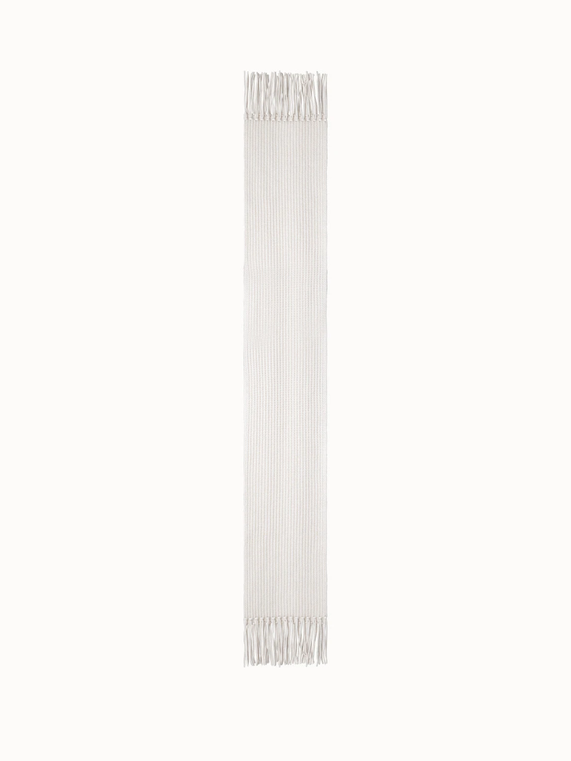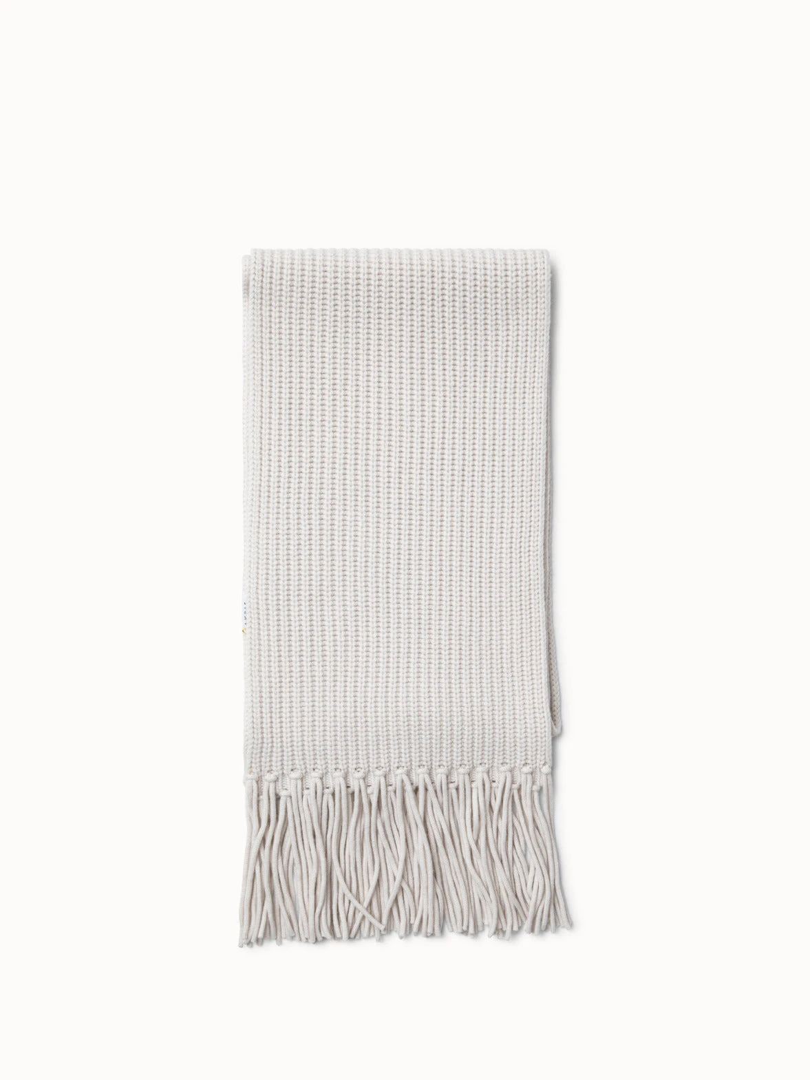 Long chunky ribbed scarf with fringes is made from the wonderfully soft wool-cashmere blend will warm you up on a chilly day. You might like to style it with a matching beanie to complete your outfit.