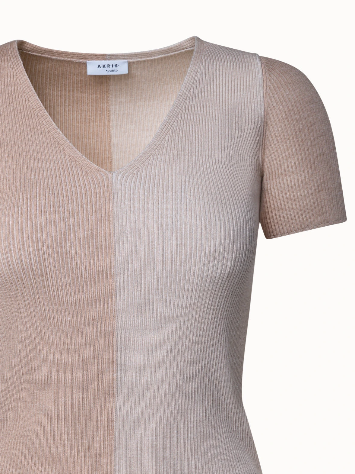 This Akris punto short sleeve pullover is crafted in a colorblock rib knit, that combines different tones to create a sleek V-neck silhouette with a twist. Made from Merino wool, it is perfect for year-round wear, whether worn on its own during the warm days of spring and summer or as a layering piece when the temperatures drop.