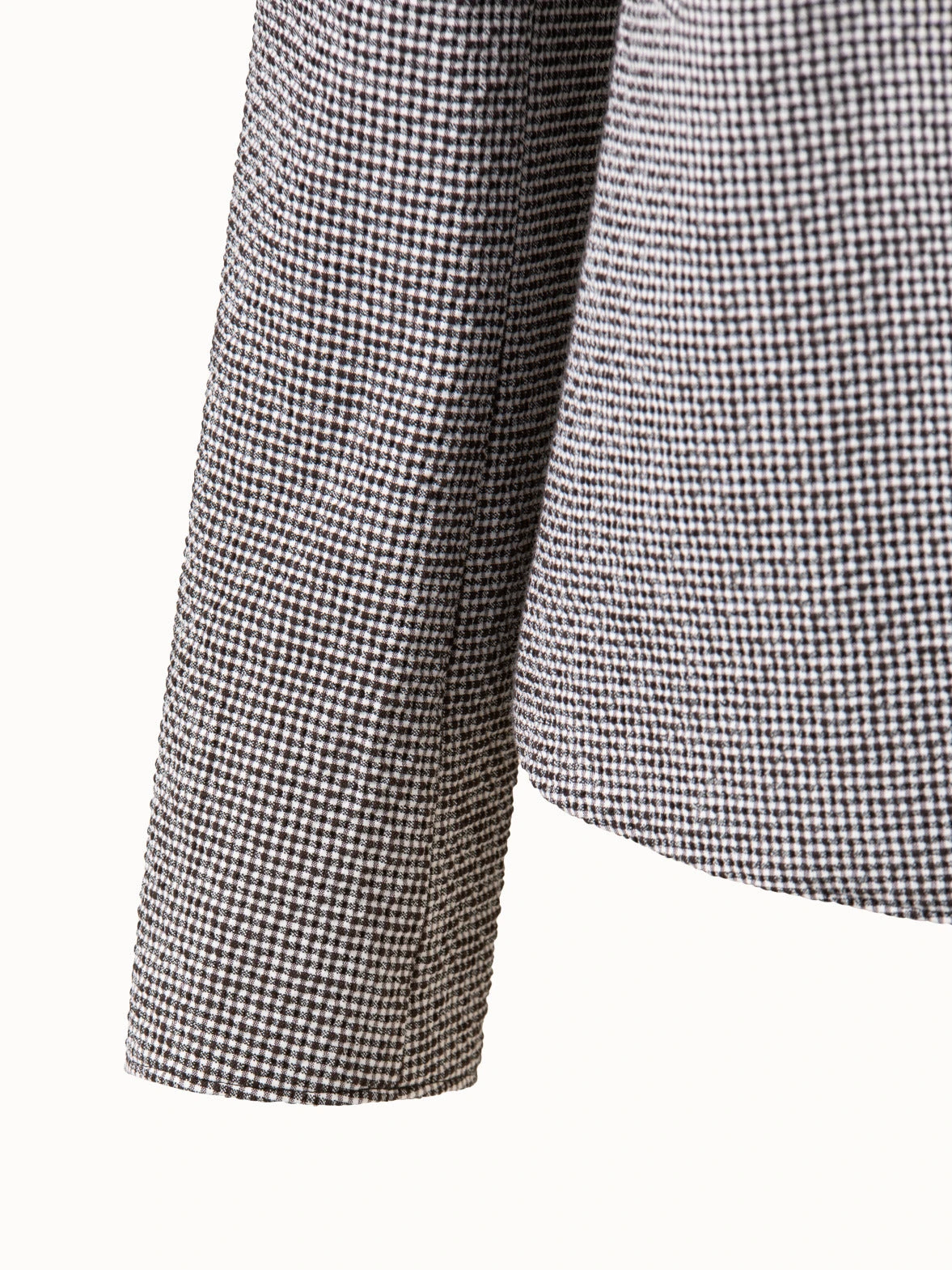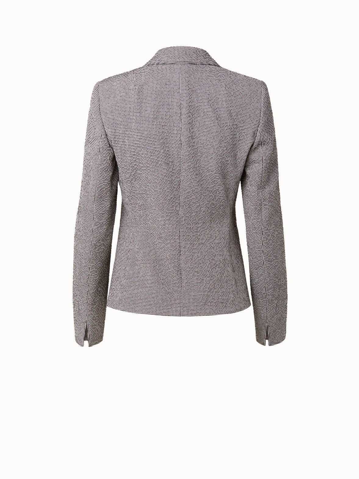 This Akris punto blazer is crafted in cotton seersucker with micro vichy. It features a classic lapel collar, one button closure, and jetted pockets. The turn-up sleeves are a sophisticated tailoring detail. Cut for a fitted feel.