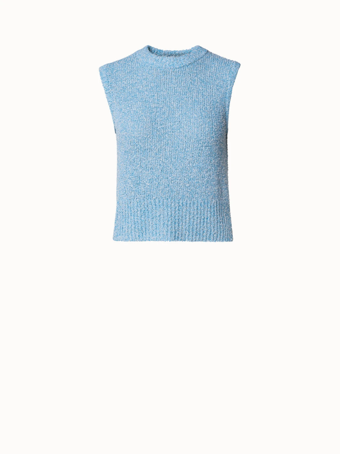 This Akris punto knit top is a feminine style for spring and summer. Crafted from a cotton viscose blend, it wears comfortably in any weather, while the bouclé structure creates a cozy look and feel. Cut for a straight fit with an O-neck and ribbed hem, it easily pairs with a multitude of styles.