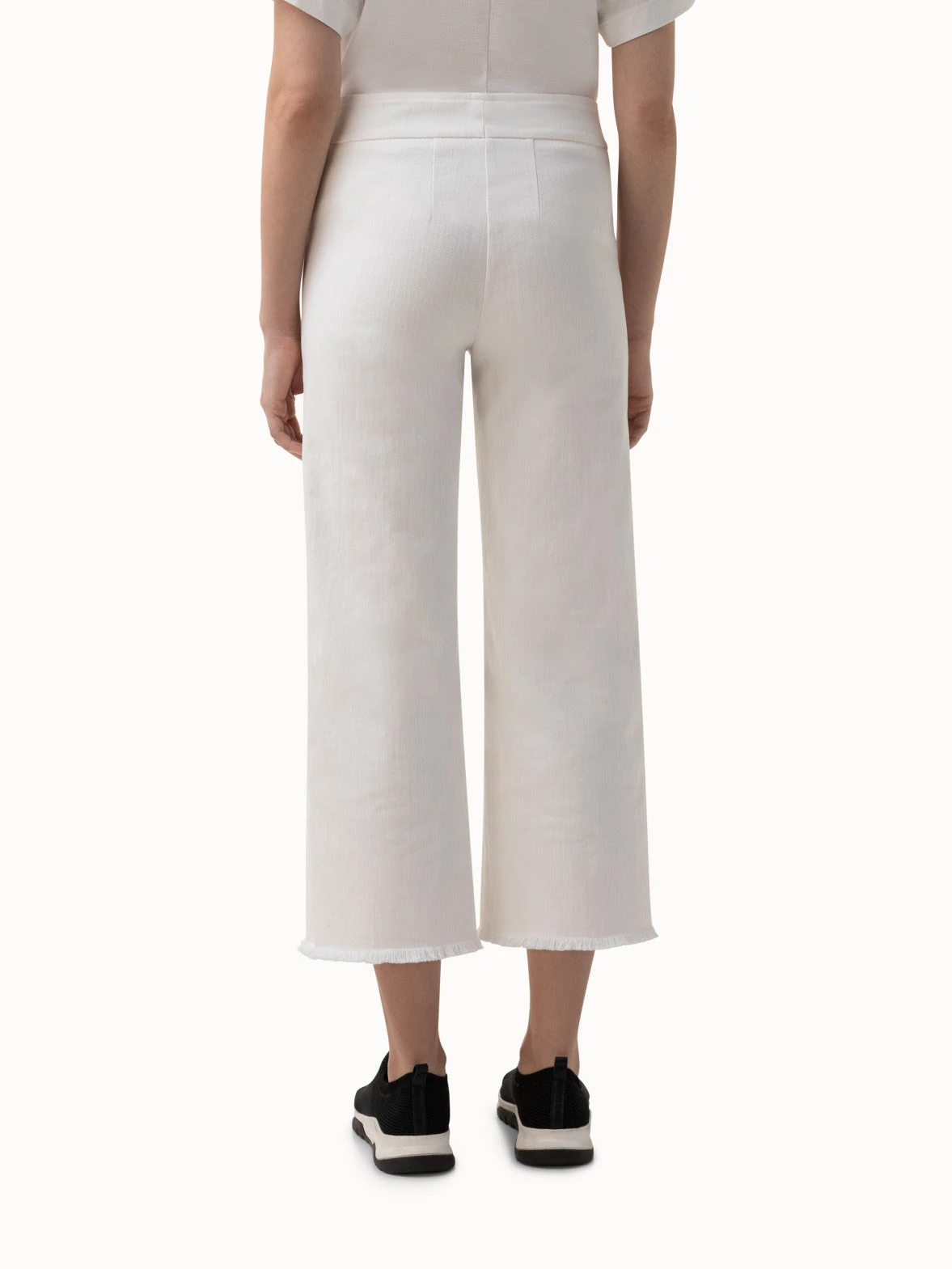 The Minata pant is crafted from Japanese denim, which is carefully woven in Japan on vintage shuttle looms. While traditional denim is mass produced on modern looms, Japanese denim is a product of traditional craftsmanship. Due to the meticulous weaving process, each pant will have its own unique texture in the fabric. Has a side zip closure and subtle fringed hem.