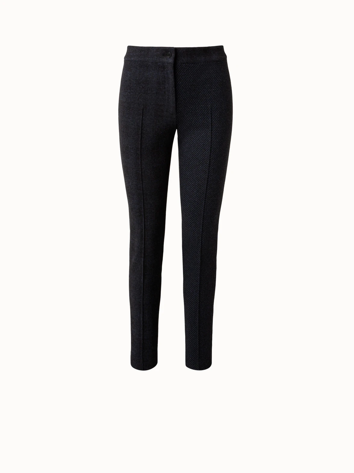 These slim Akris punto MARA pants are crafted in a soft viscose blend and feature a patchwork pattern with two different designs on the front of the leg. They feature a front zip closure and a strong front crease.