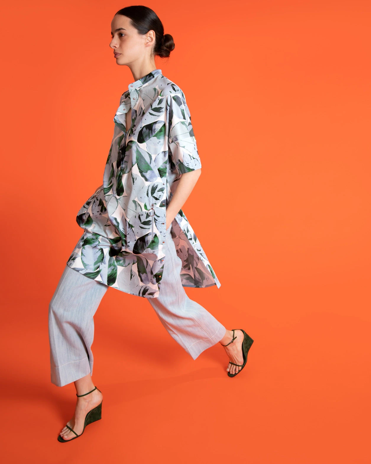 Cropped Straight Leg Pants In Cotton Denim
