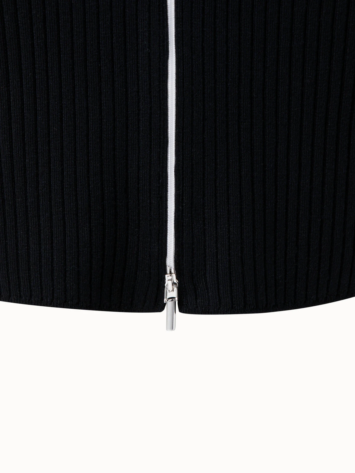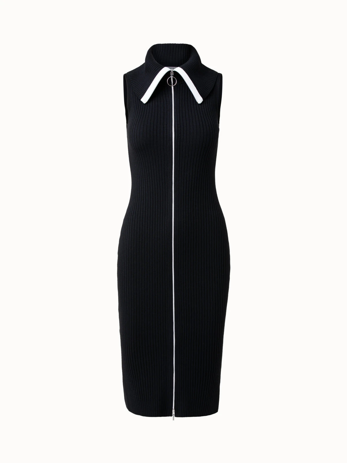 Contrasting full-length zip closure with signature Punto puller and oversized collar give this knit dress a sporty touch. It is designed in a slim, longline silhouette and made from ribbed lightweight and soft wool.