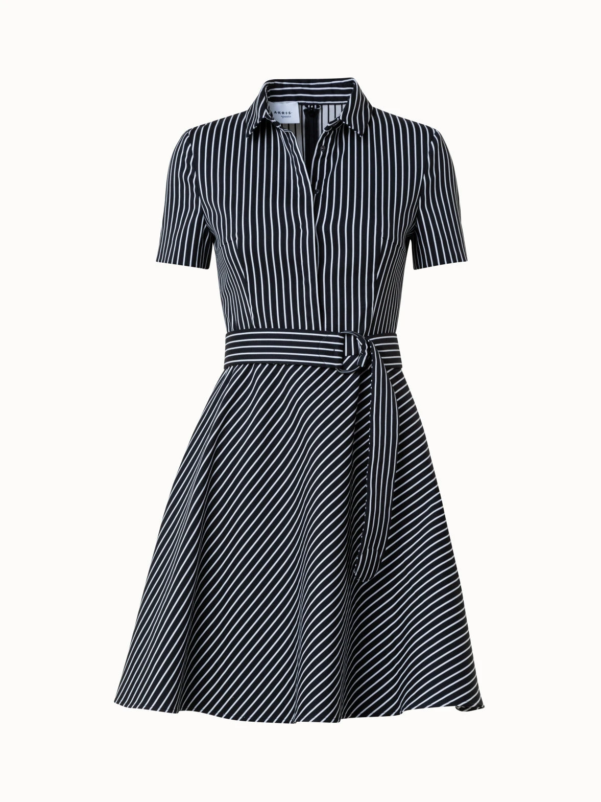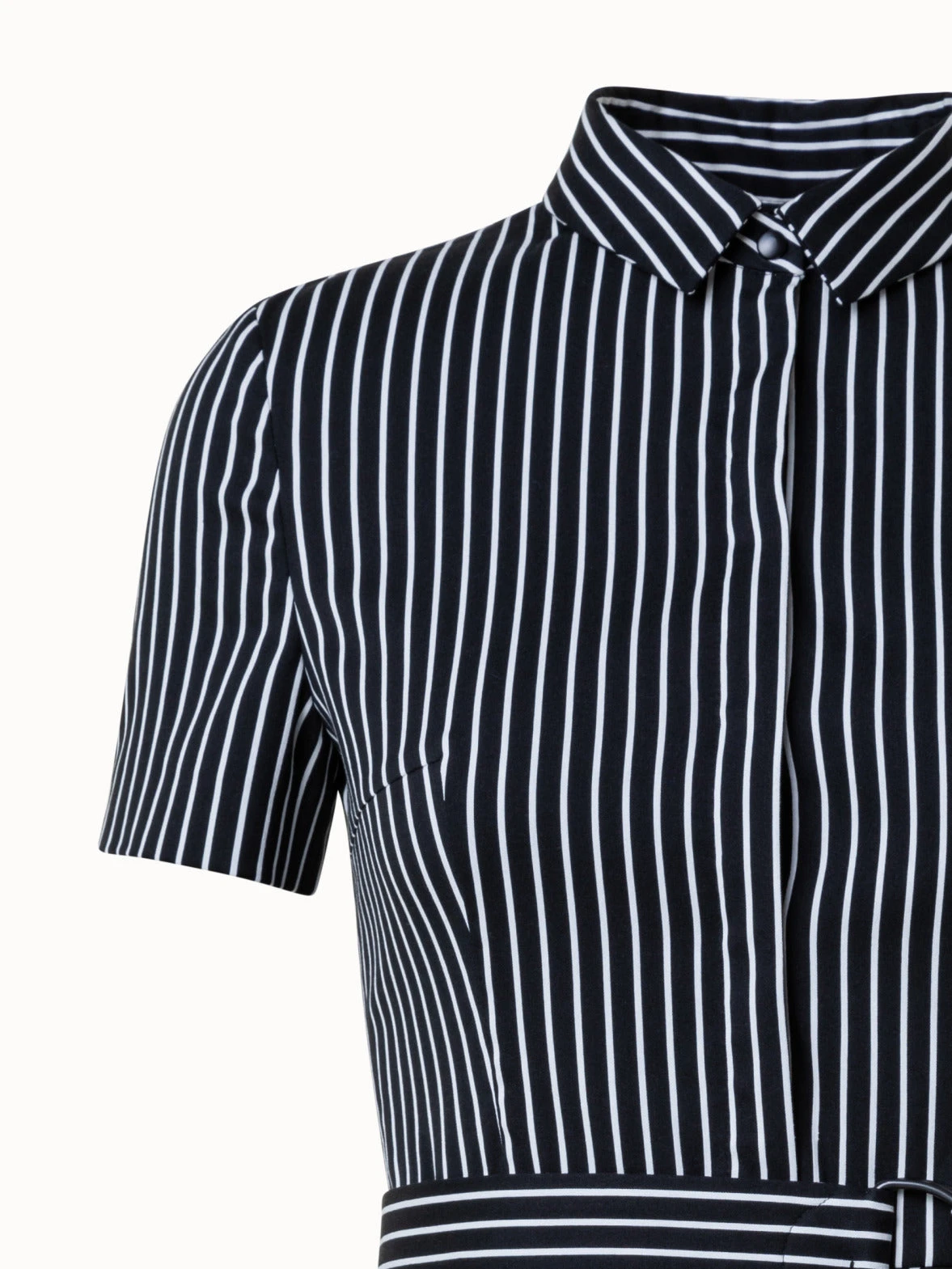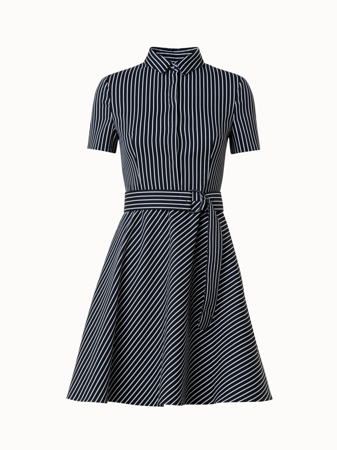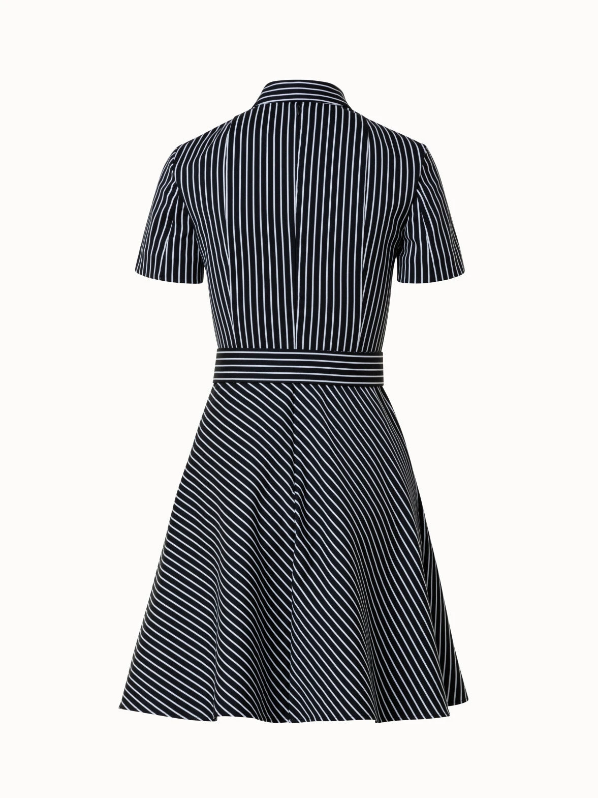 dress, pinstripe jacquard in cotton blend stretch, kent collar, a-line, flare, polo placket closure,short sleeves, incl. selfbelt