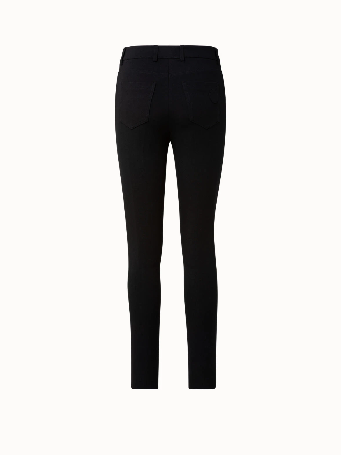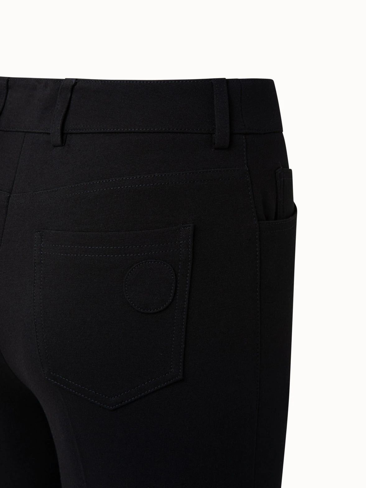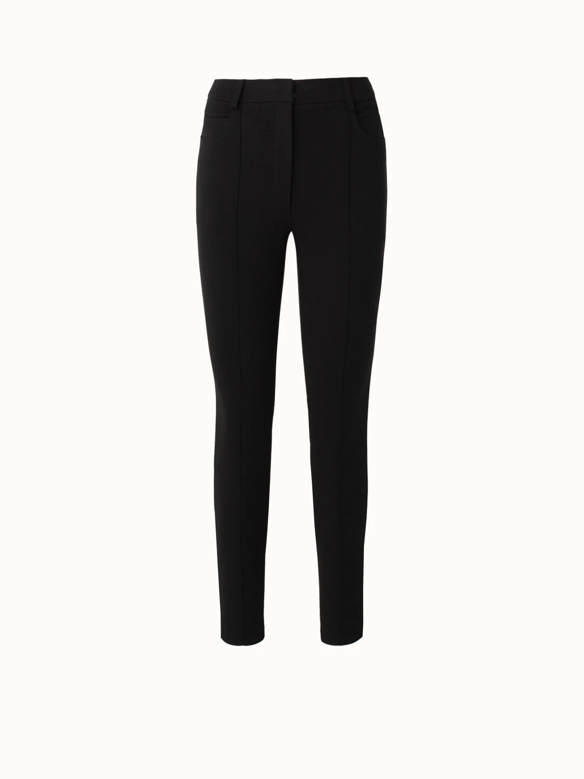 These Akris punto Maren pants are a modern slim silhouette. Crafted in jersey, they are perfect for everyday wear in both comfort and looks. The five pocket design, belt loops, and front zip closure are reminiscent of classic jeans, while the stitched crease adds an elegant detail. Cut for an ankle-length fit. Features a signature punto application on the back pocket.