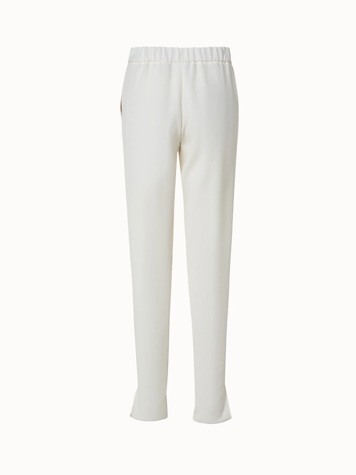 These Akris punto pants Mike are a versatile style for warm days. Crafted in a lightweight crêpe fabric and featuring a drawstring waist, they are incredibly comfortable yet chic. These pants are cut with a tapered leg with bottom slits. They feature slash pockets and a side zip closure.