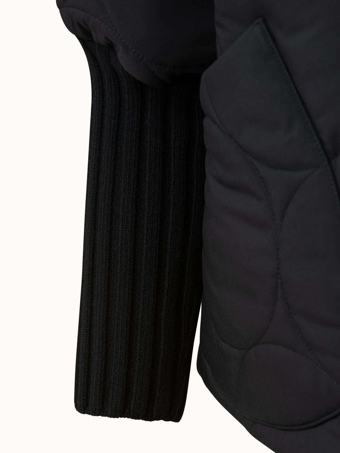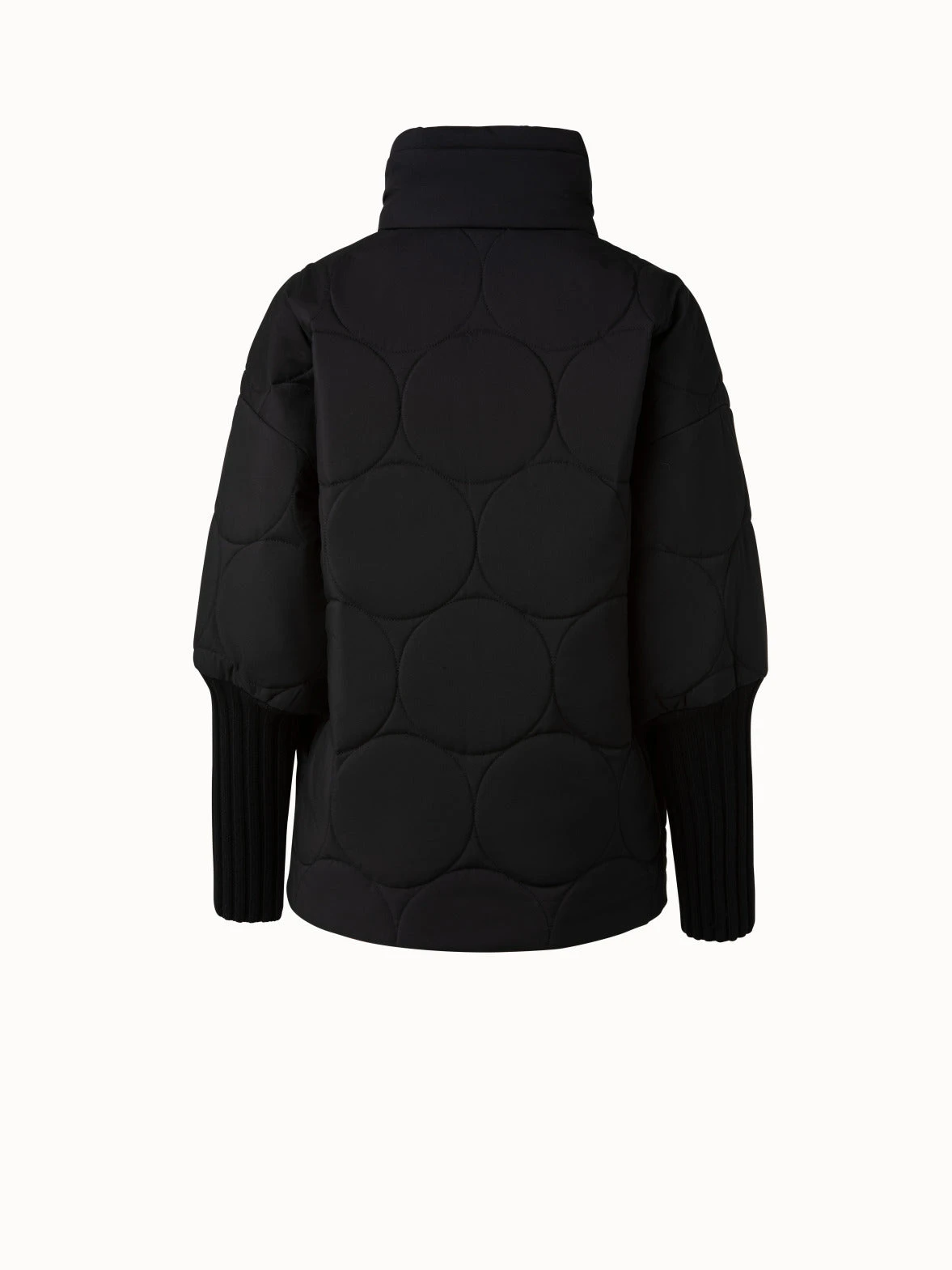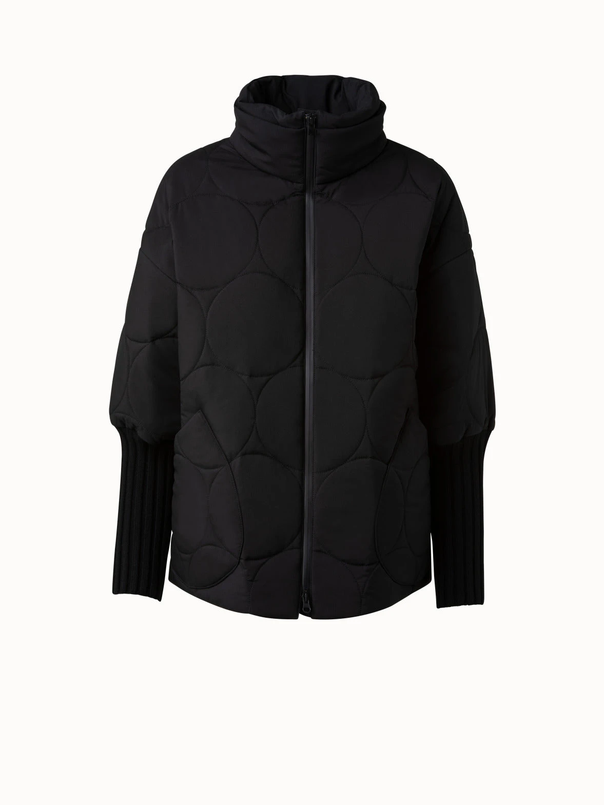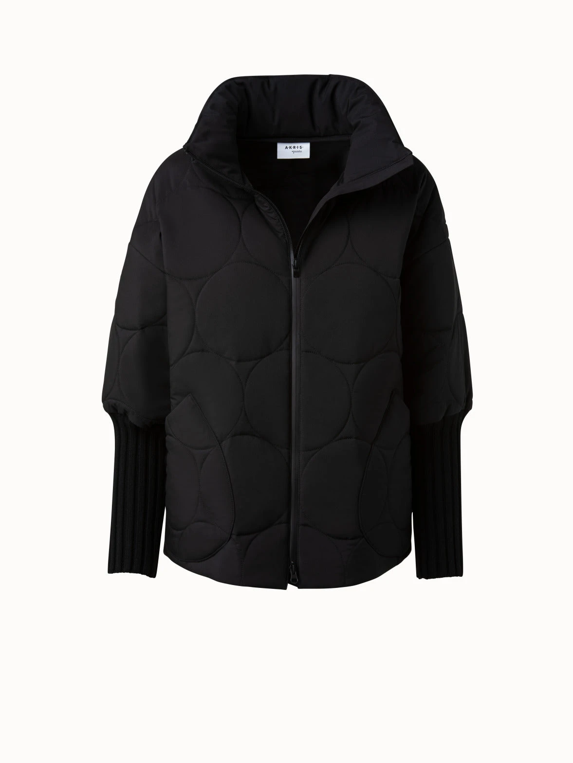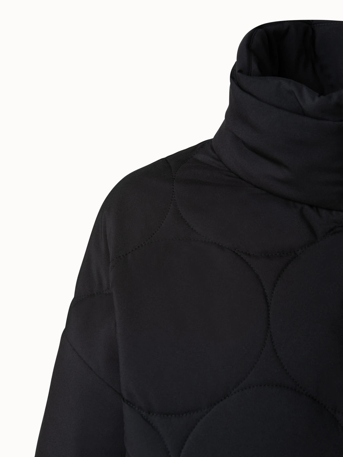Discover the signature Akris punto shape as a quilt on this puffer jacket. The body is crafted in weather-resistant nylon with padding, while the lower part of the sleeves are made of soft knit. The jacket is cut for a boxy fit and features a stand-up collar. The double front zipper allows for many styling options. Semi-circle patch pockets will keep your hands warm as the temperatures drop.