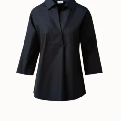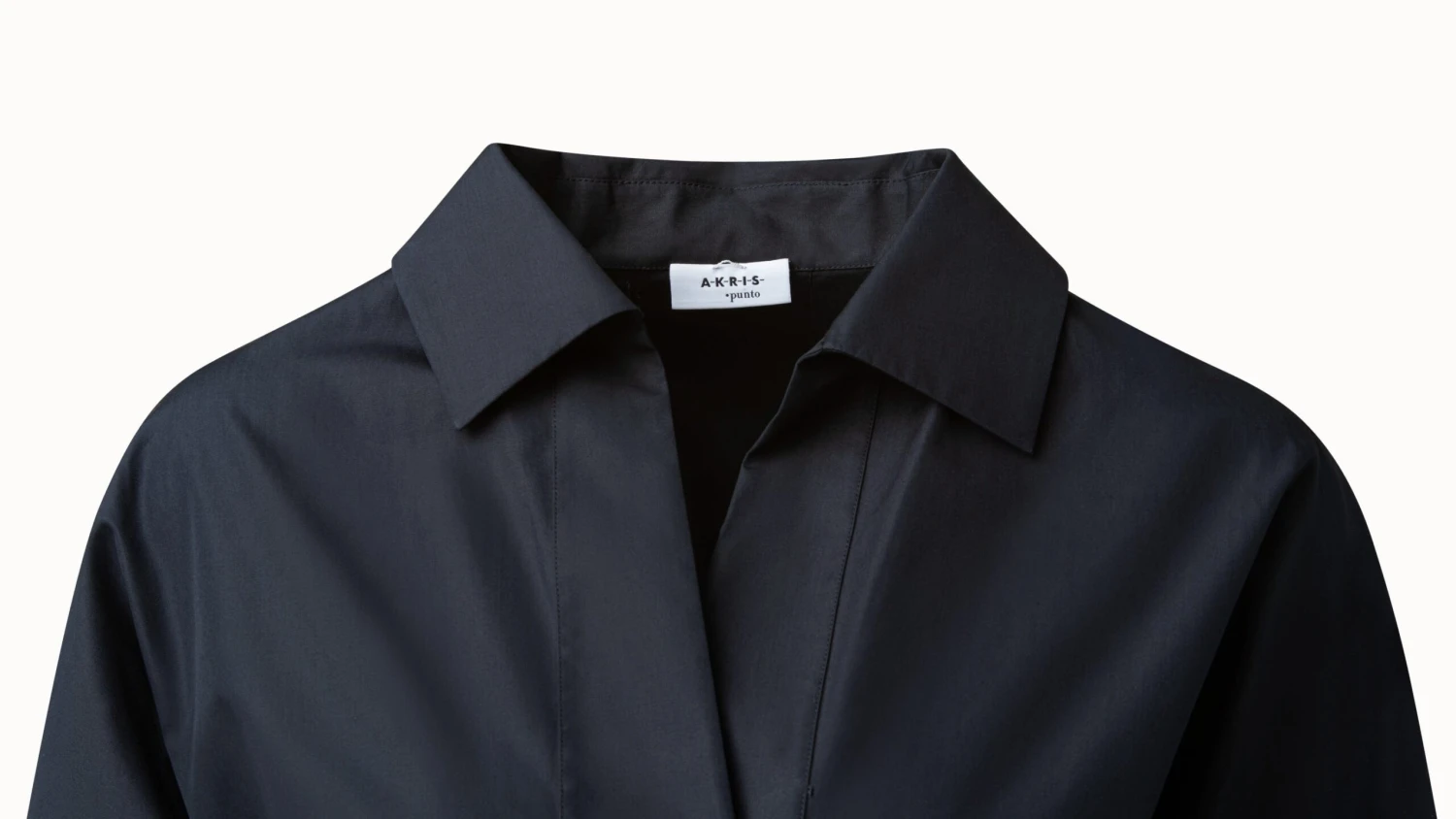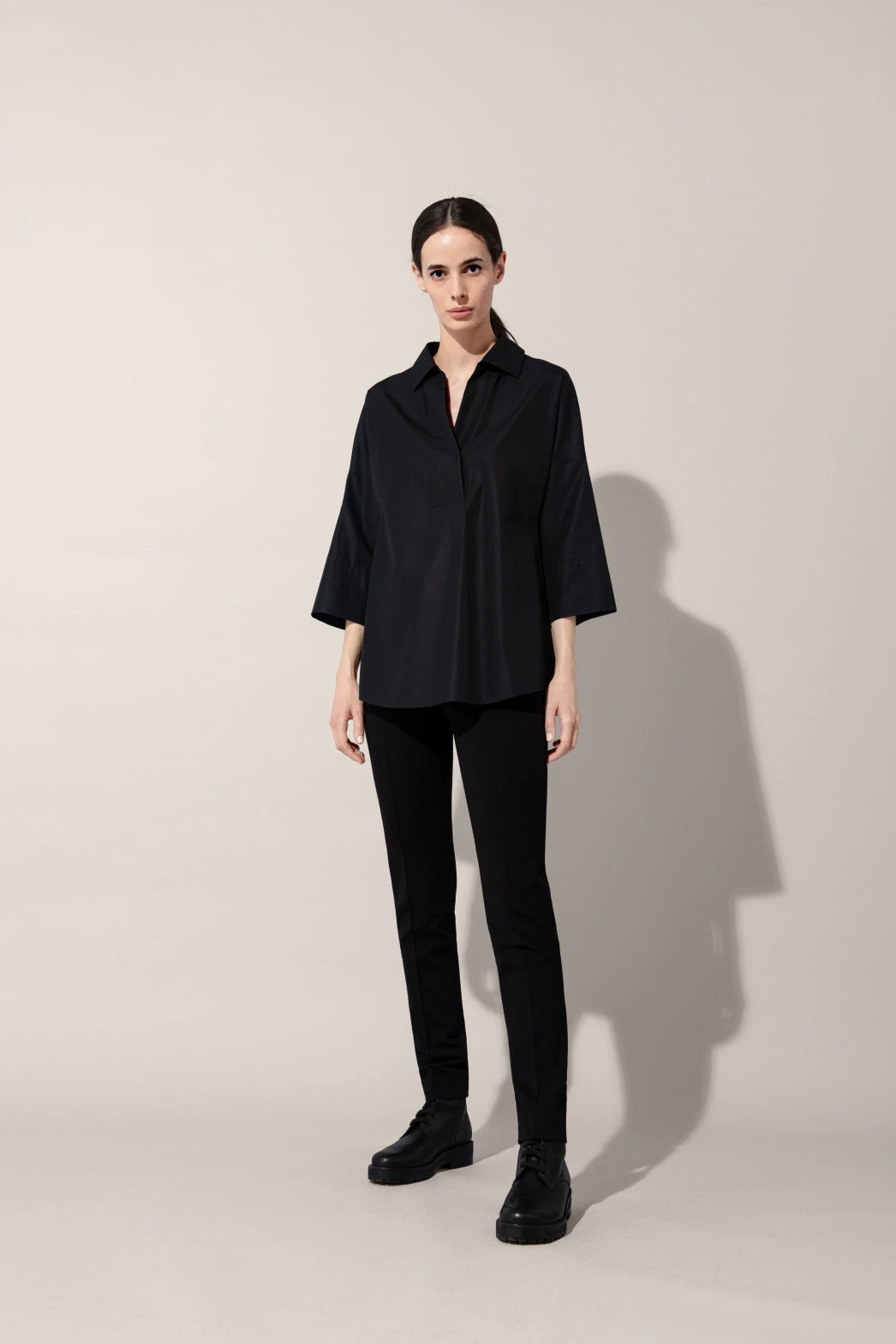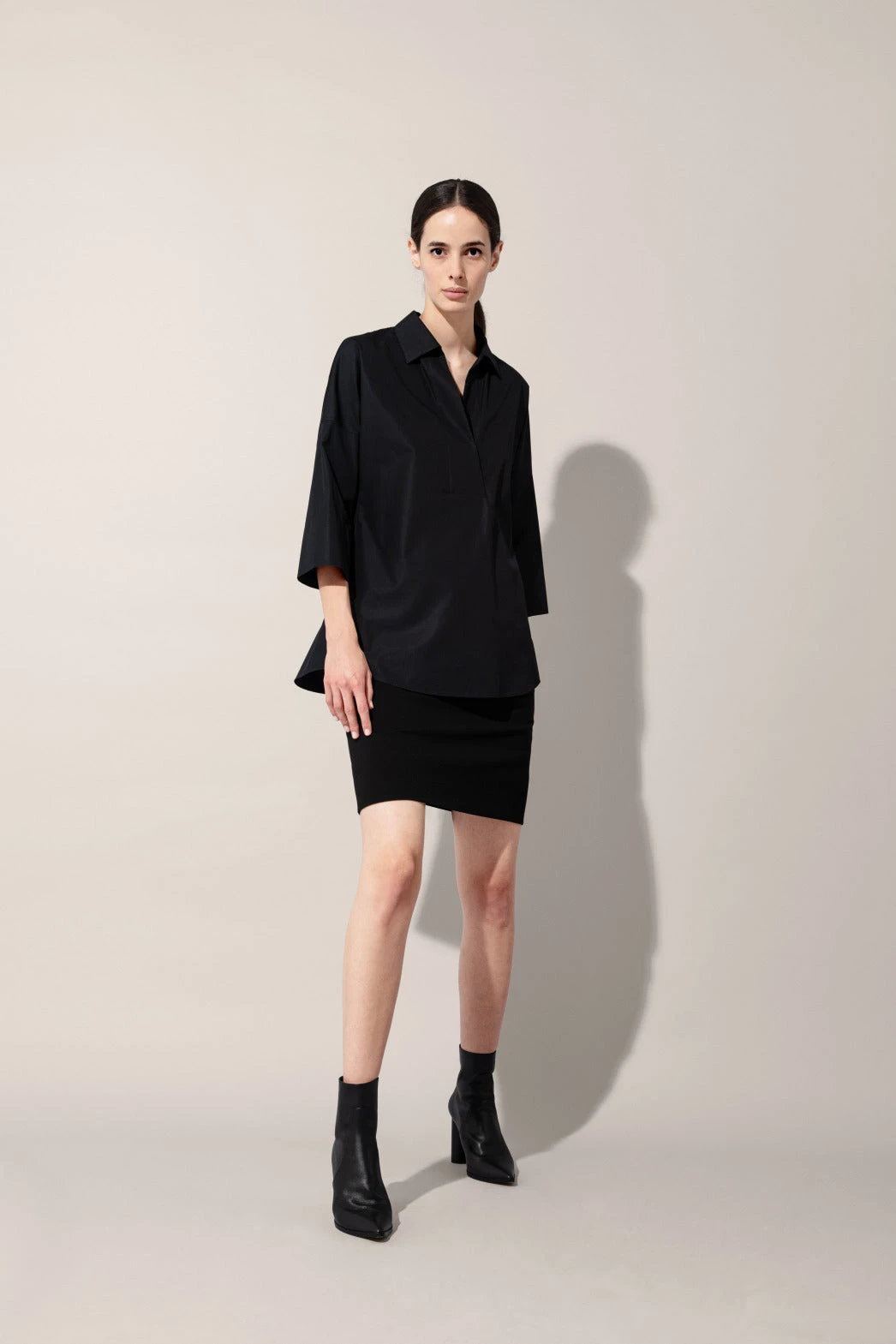 Oversized shirt in cotton with 3/4 kimono sleeve and shirt collar V-neck.