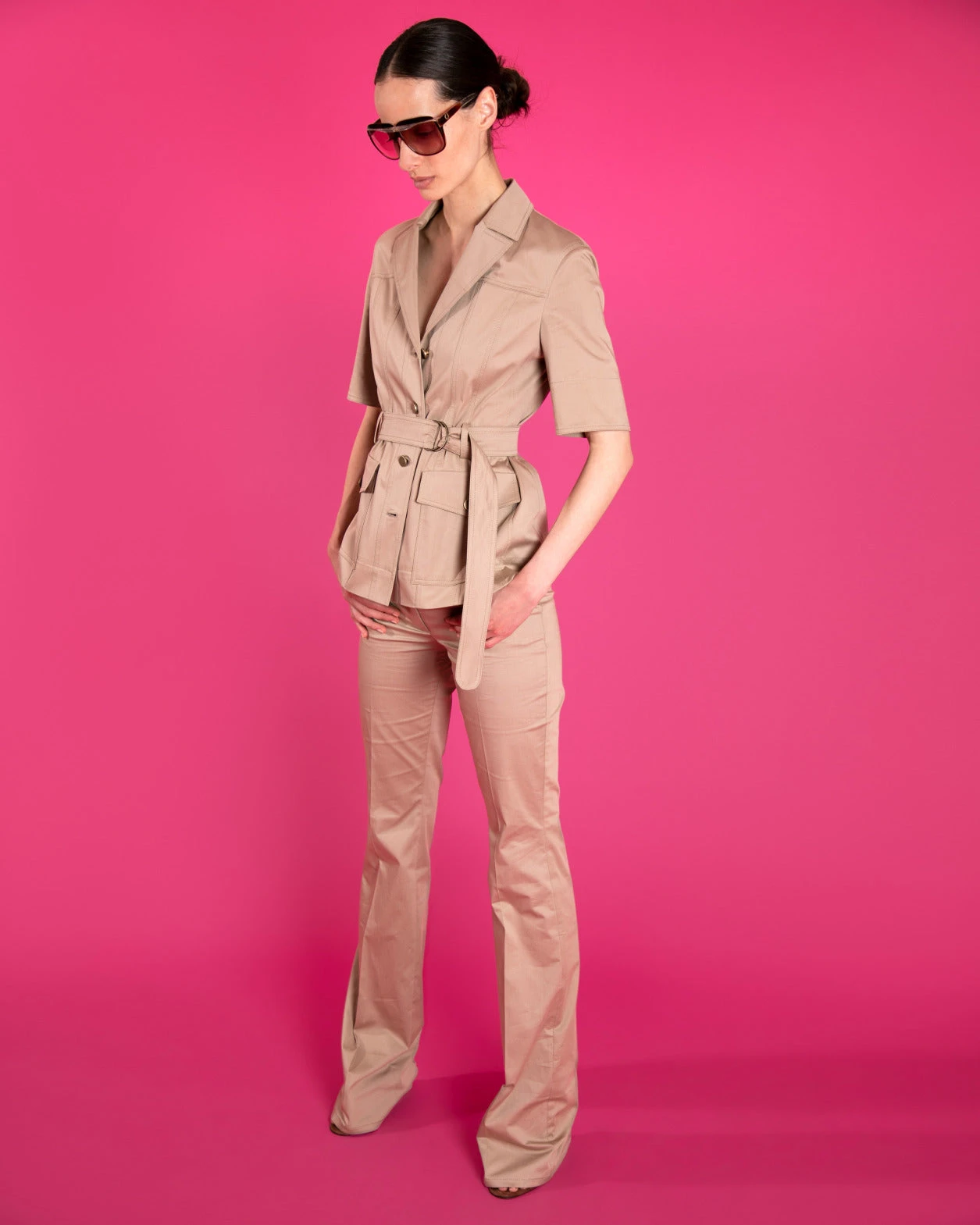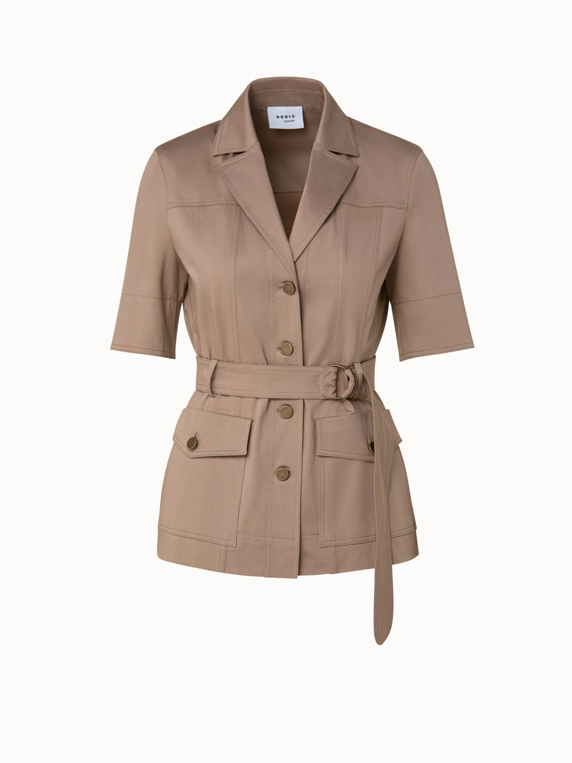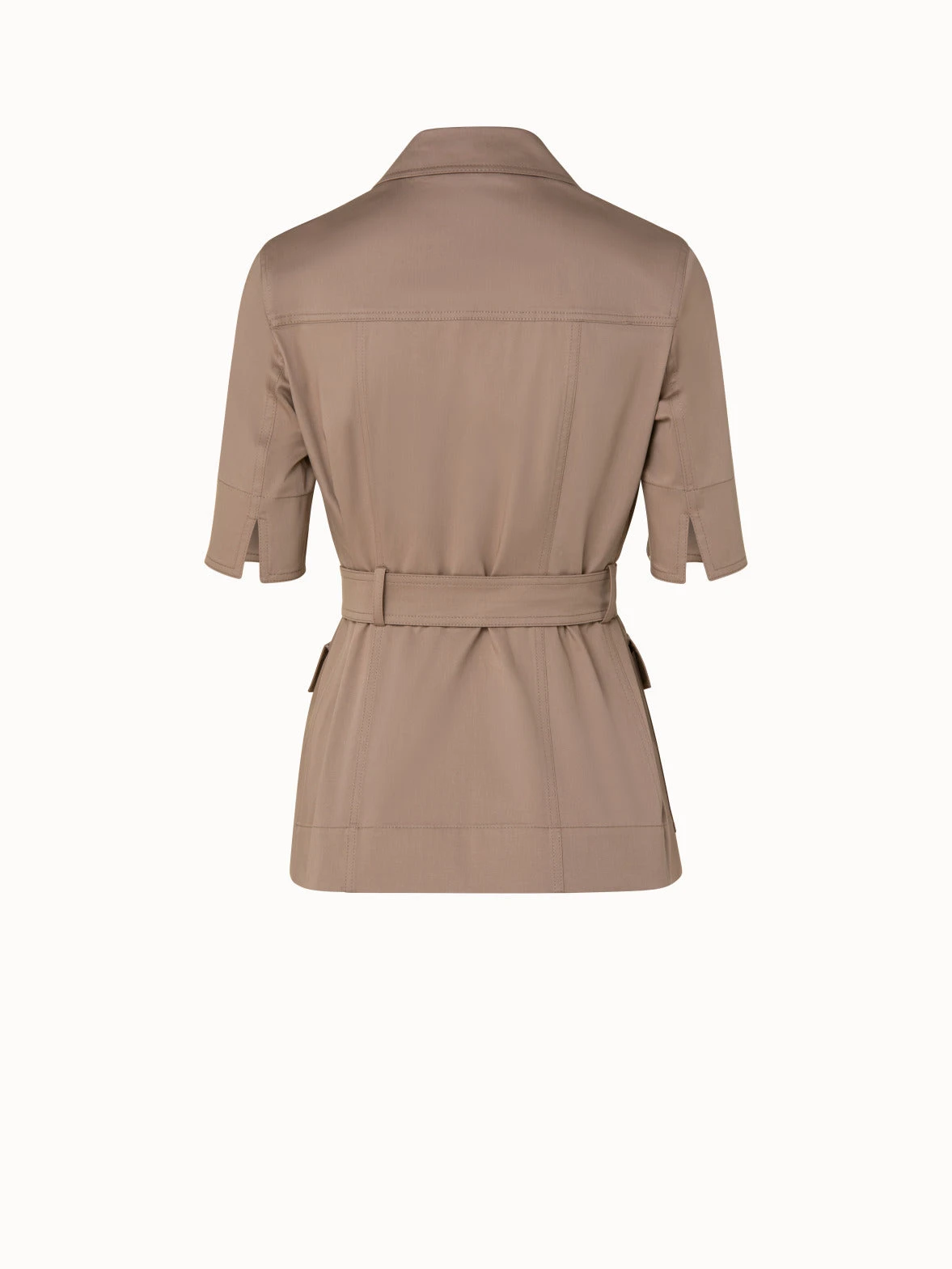 Short Sleeve Utility Jacket In Cotton Stretch Satin