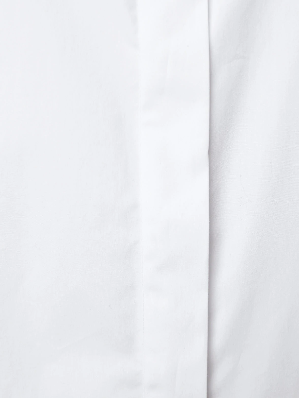 This classic collared blouse tucks easily into a skirt or a pair of pants. A timeless but modern silhouette, this shirt is the perfect blank canvas for any outfit. Features hidden front buttons, seam pockets, and a gathered back.