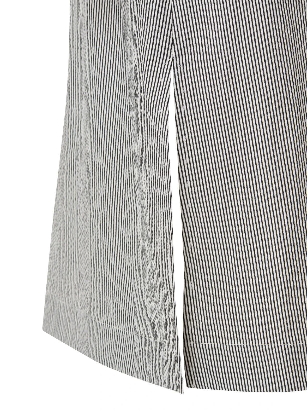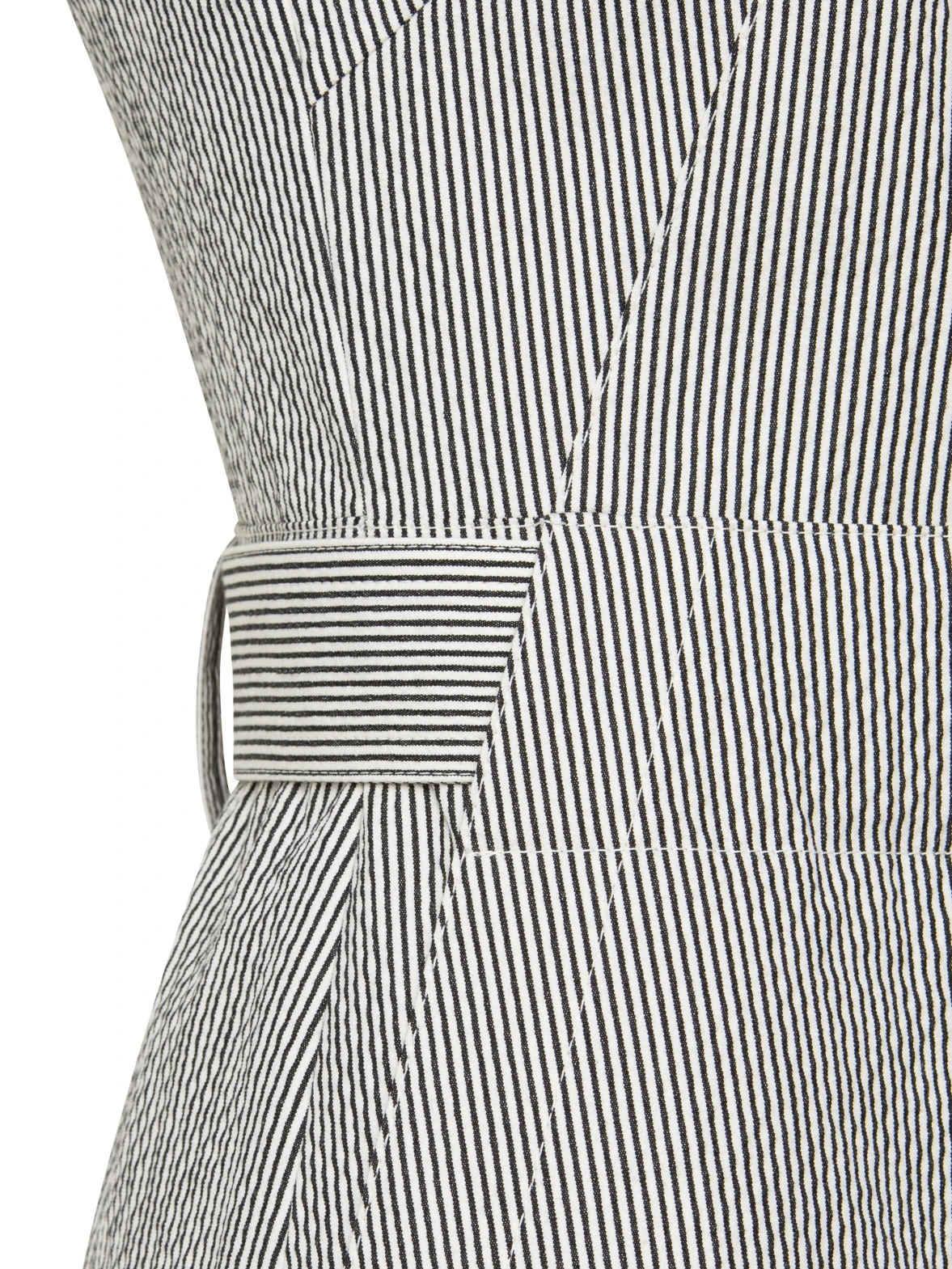 Sleeveless Striped Cotton Seersucker Midi Dress