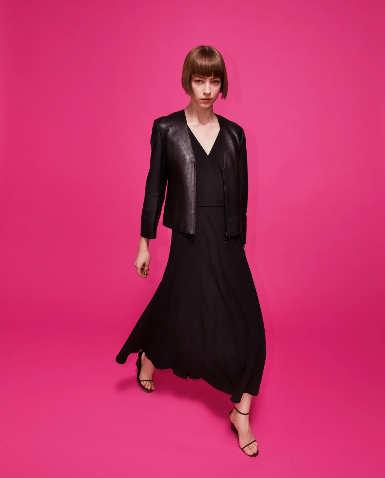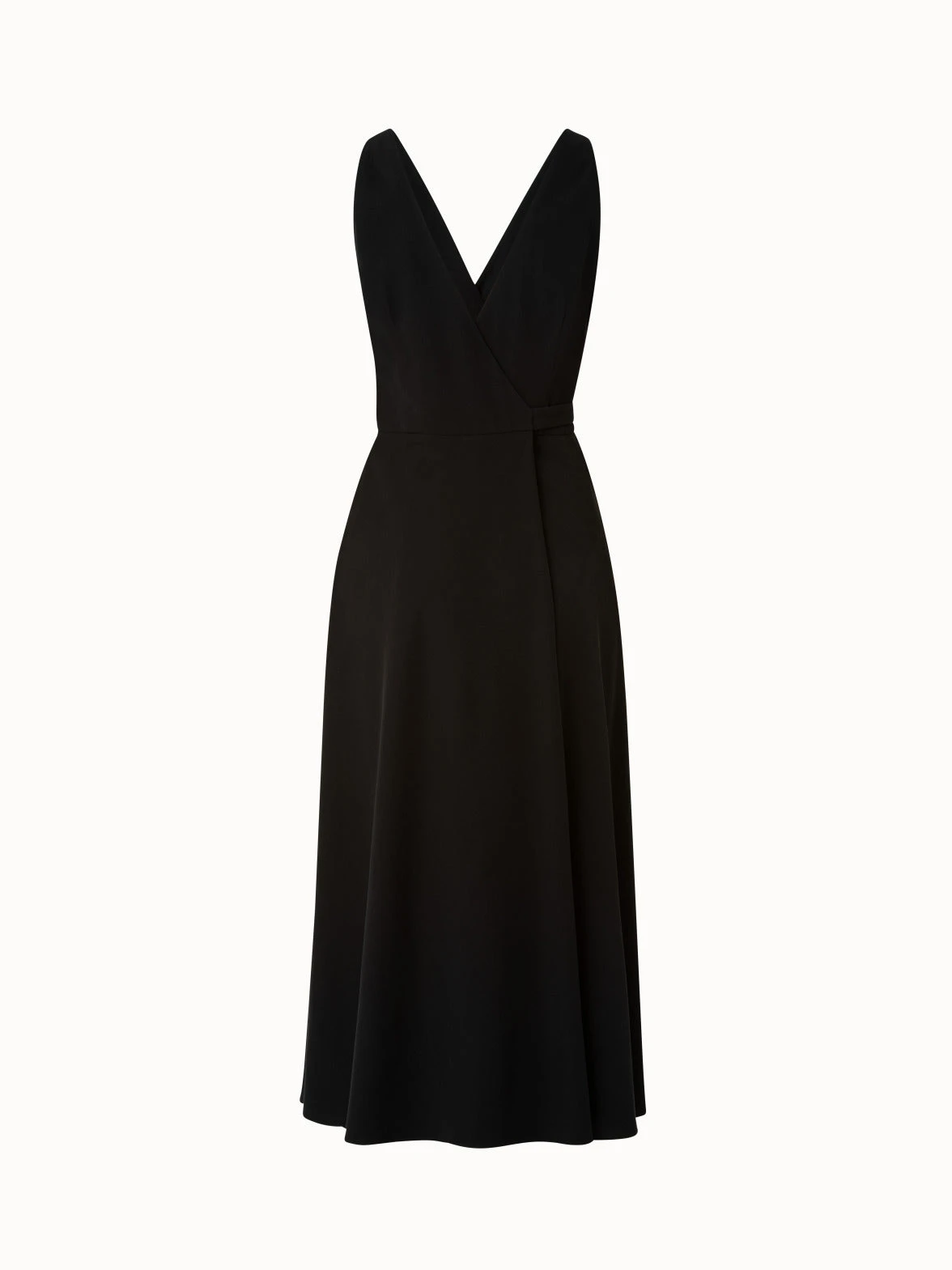 A black dress is always the right choice for evening occasions. This Akris punto sleeveless midi dress is crafted in the softest washed cotton with Ottoman rib. The skirt is cut as a semi-circle and features side seam pockets. The front and back V-neck create a flattering top. The dress comes with a D-ring belt to cinch your waist for a sculptural silhouette.