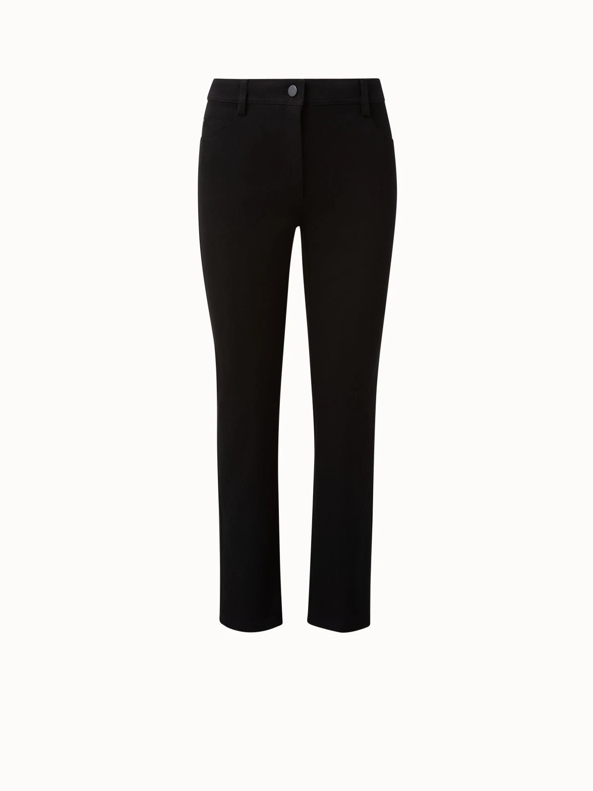 Akris punto Maru pants are an elegant ankle-length denim option. They feature five pockets, a front zip closure, and belt loops for a traditional jeans look. The straight leg creates a sophisticated silhouette.