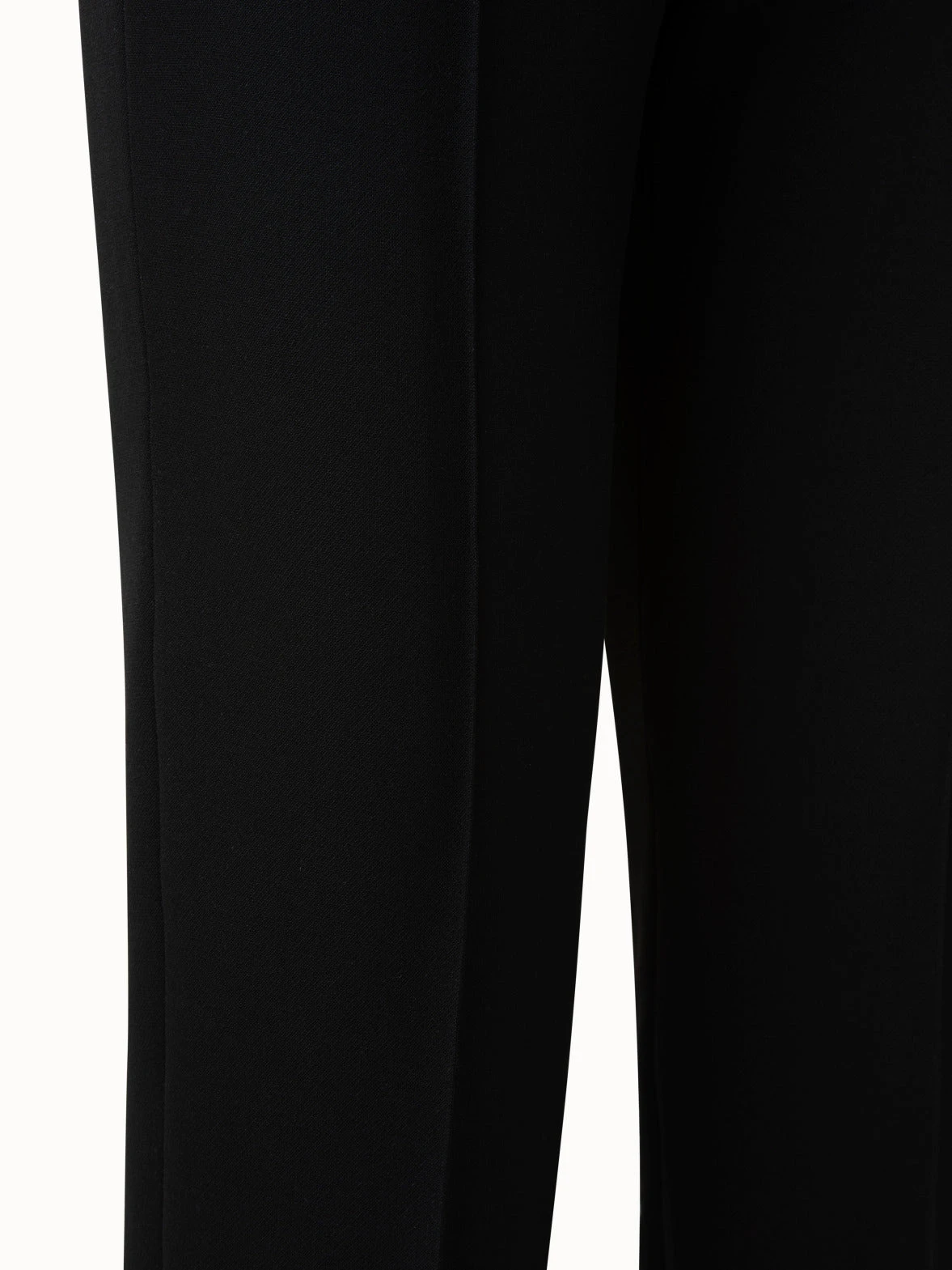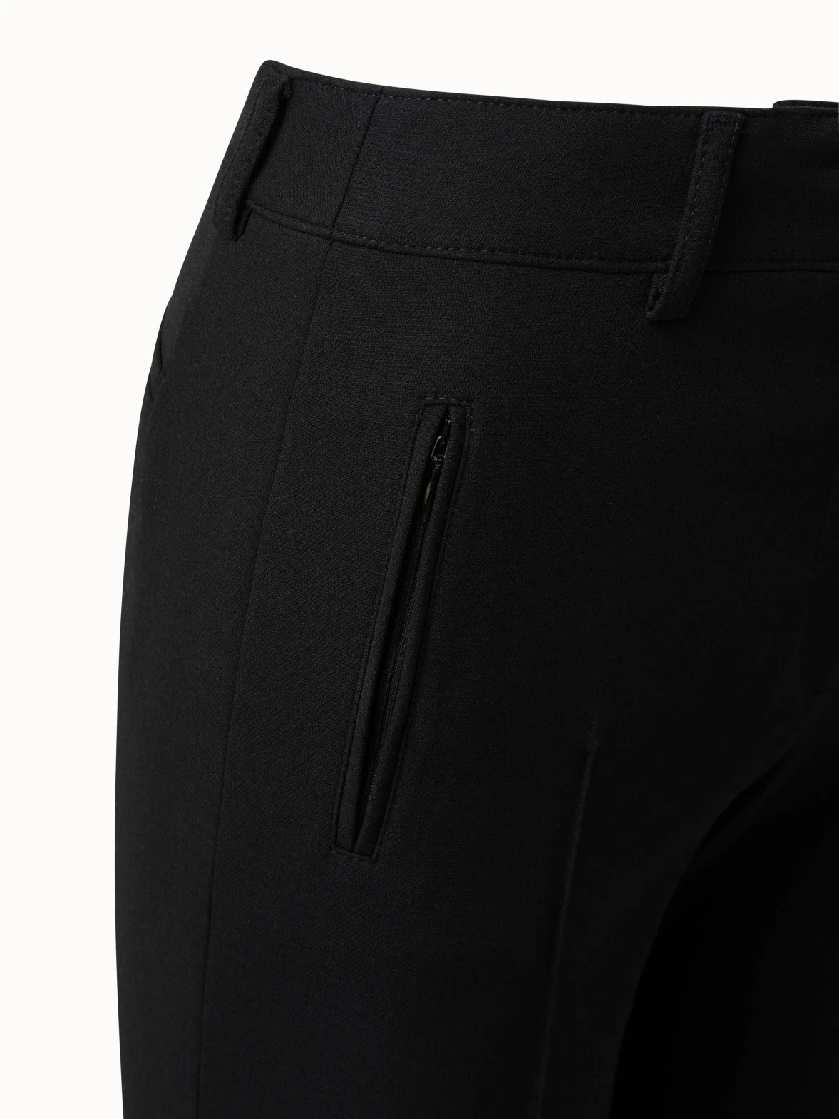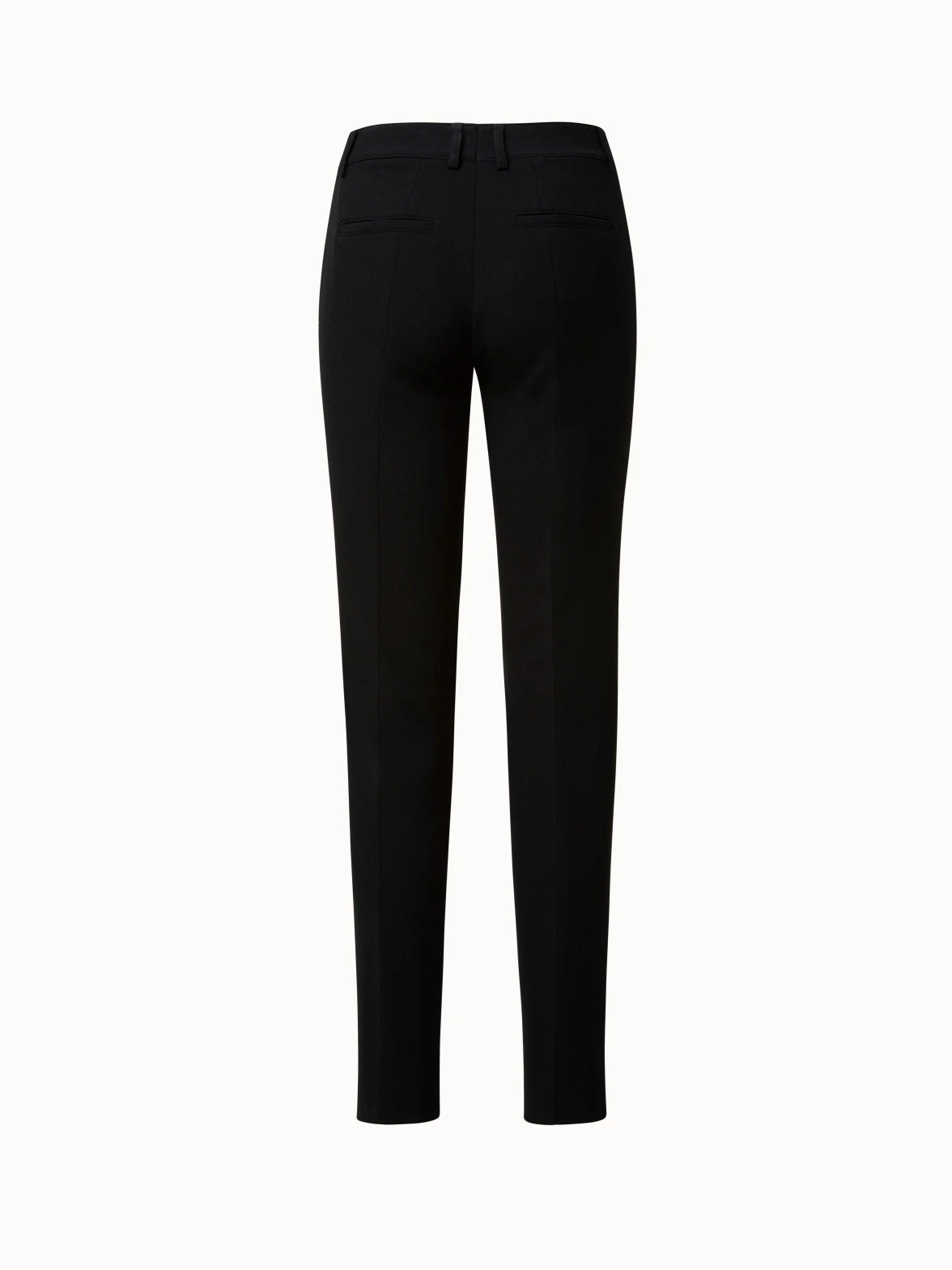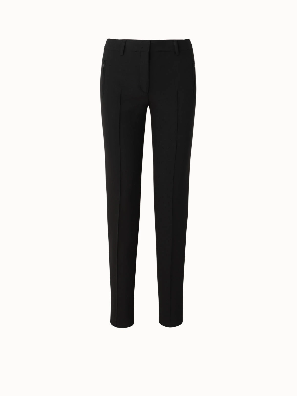 A business elements pant that you will pack into your suitcase on every business trip. The jersey pant is comfortable, yet has a timeless look thanks to its straight leg. It has a front zip closure and concealed back pockets. Wear the full-lenght business pant with an Akris punto top or blouse, matching blazer and a coat. Find the right handbag for any event from the office to the evening in our handbag guide.