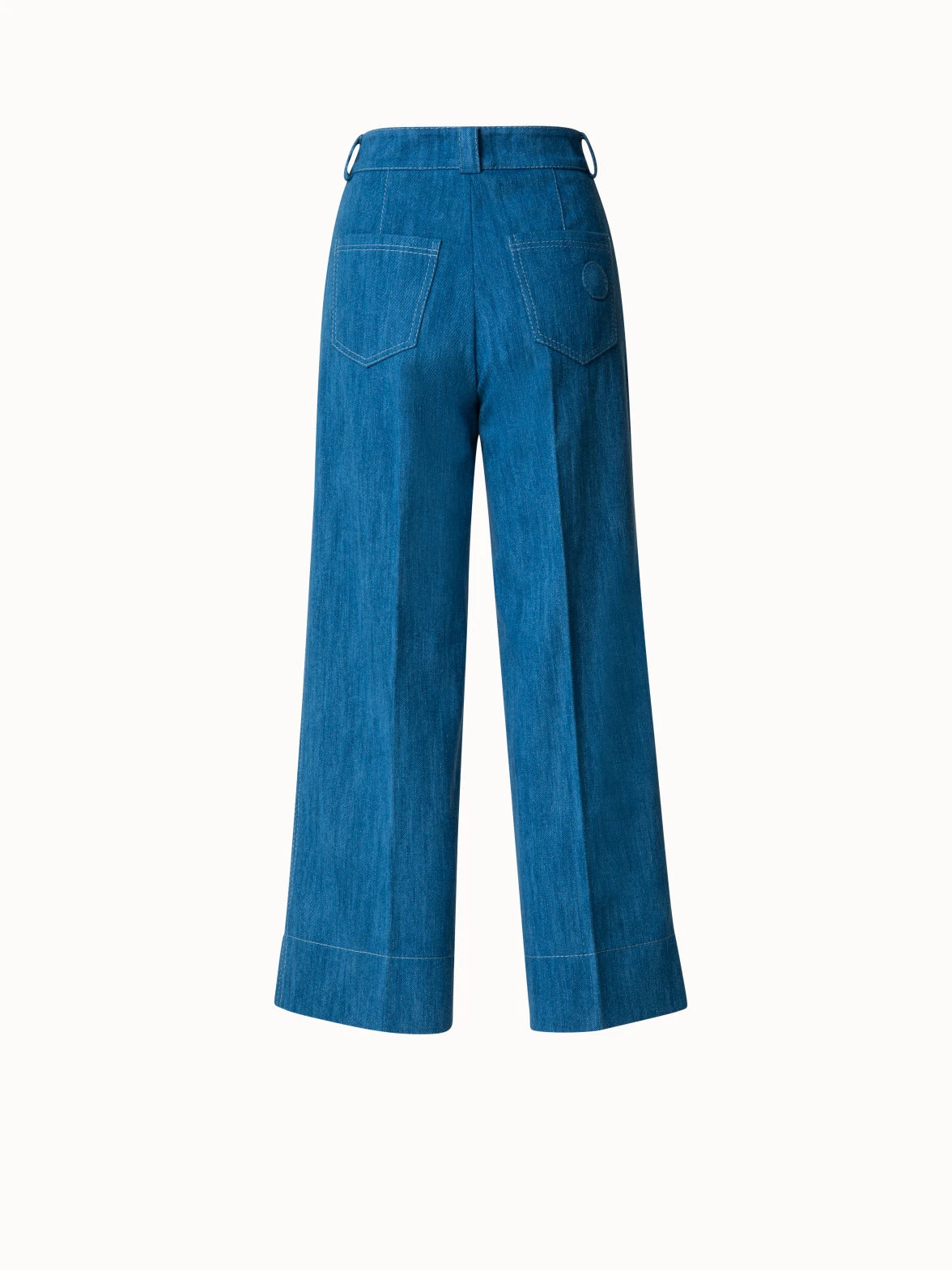 Akris punto Chiara high waist jeans are cut for a cropped, modern straight-leg fit. Crafted from cotton stretch denim, they feature a front closure and five pockets. The punto signature dot patch on the back pocket is a subtle branding for those who know.