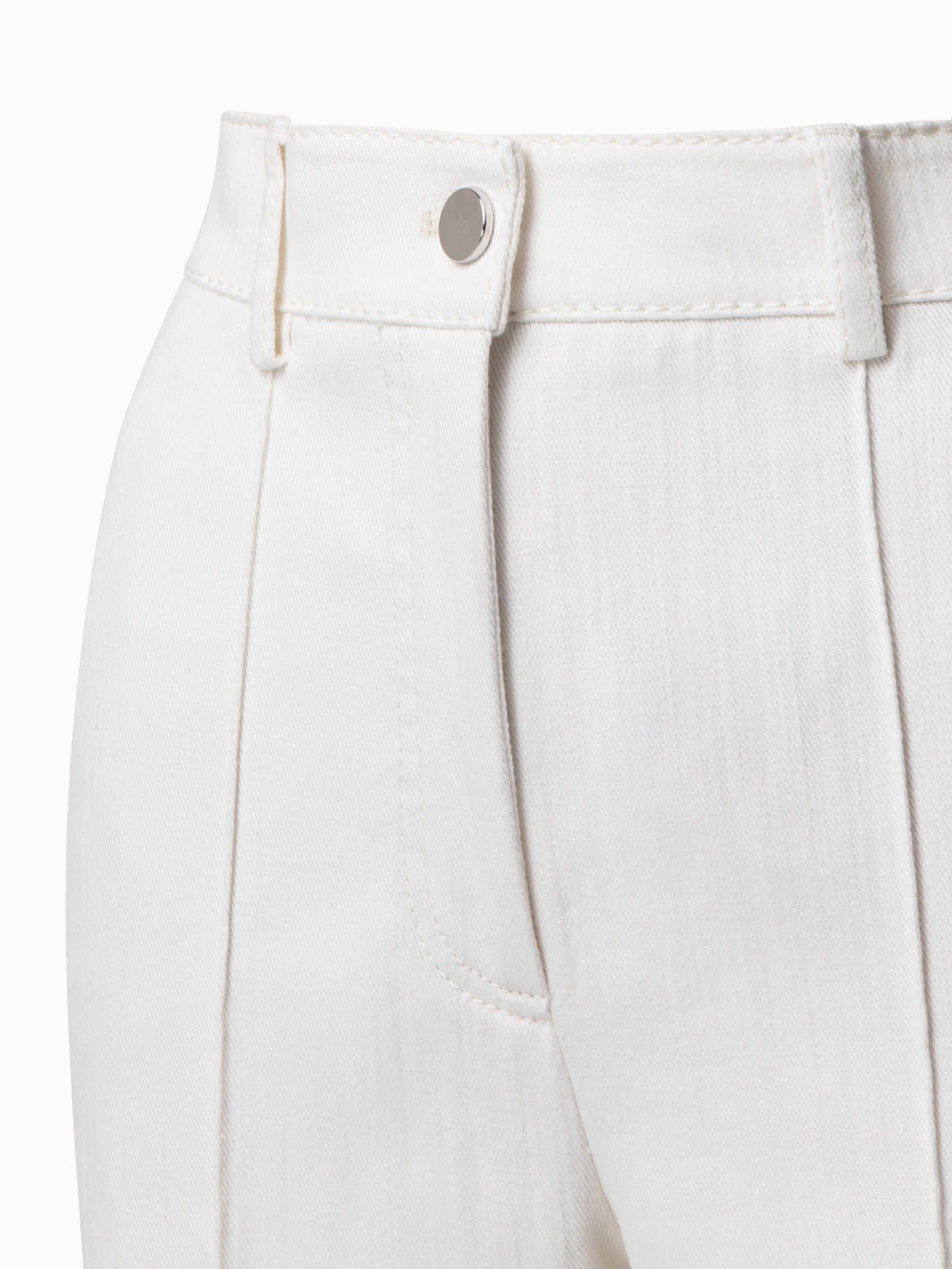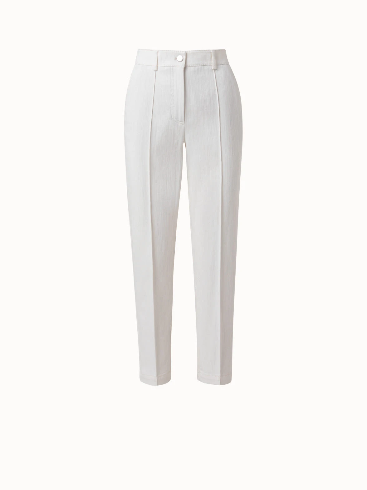 These Akris punto Feryn pants are crafted in comfortable cotton stretch denim. A versatile addition to any spring and summer wardrobe, they feature a front zip closure, belt loops, slash pockets in the front, and welt pockets in the back for an upscale look. The mid-rise and tapered ankle-length leg create a timeless silhouette.