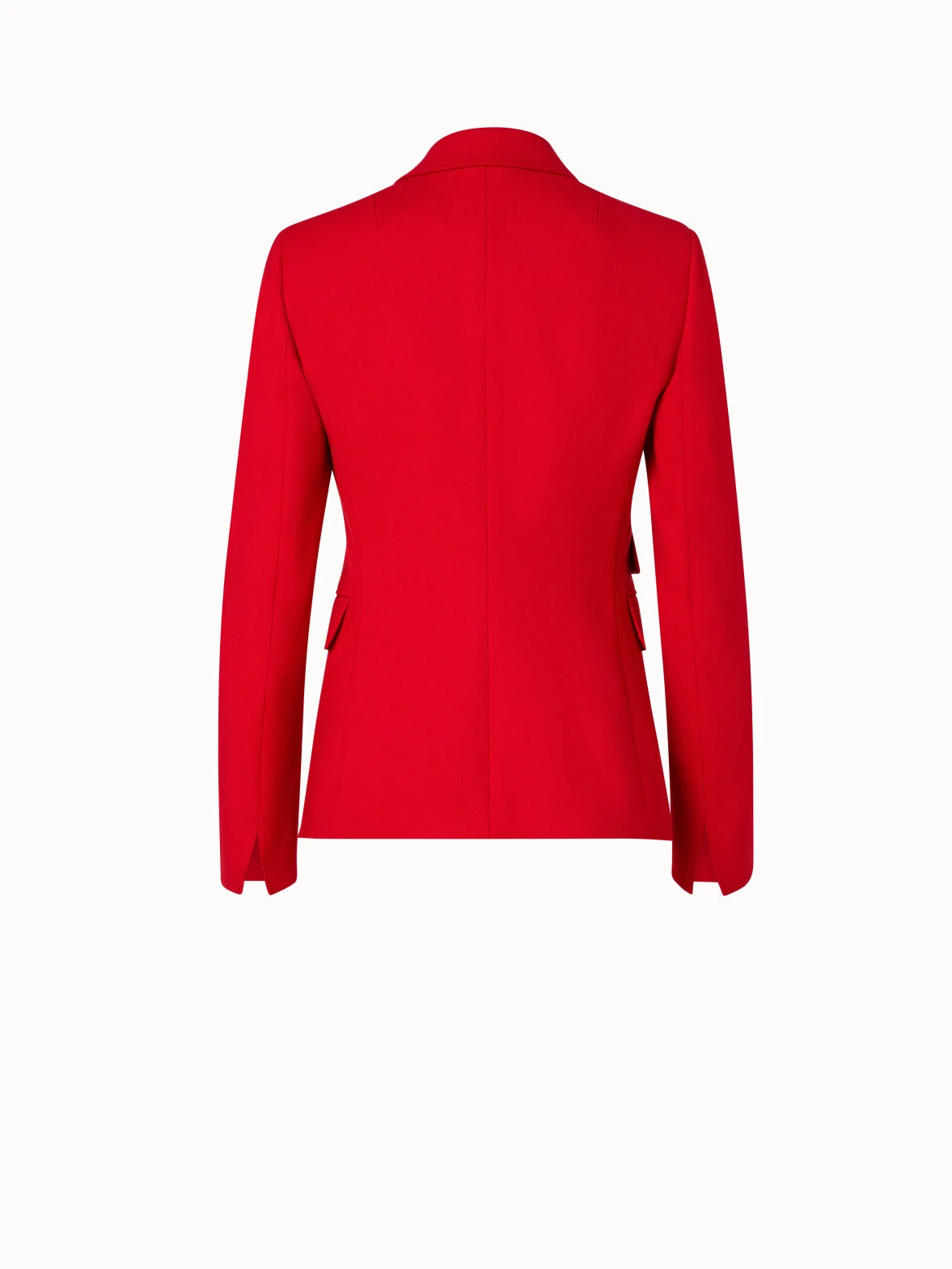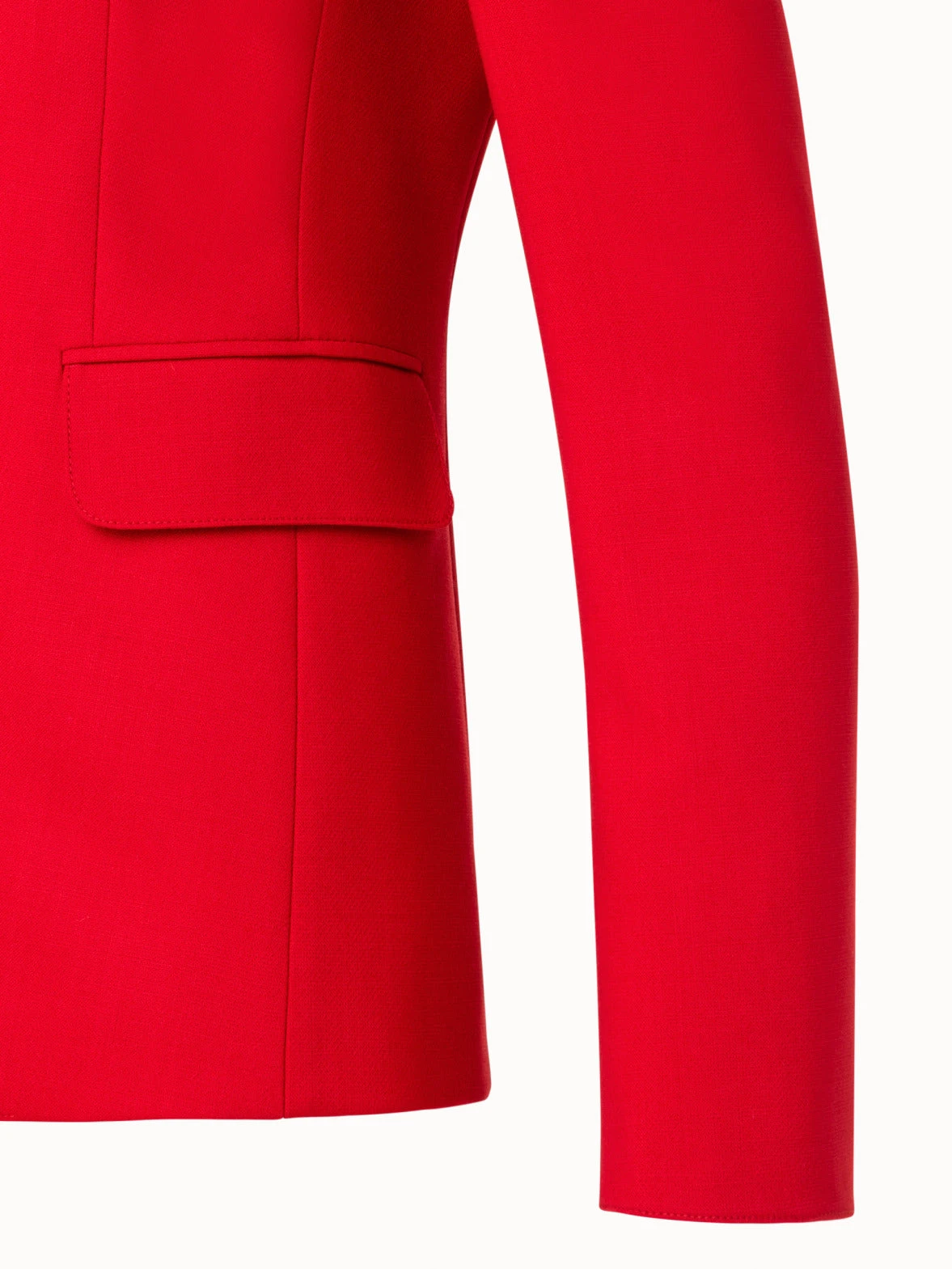 This Akris punto blazer is crafted in a heavy wool crêpe, giving it a substantial feel and sleek shape. It features a classic lapel collar and two-button closure. The flap pockets with welt detail complete the sophisticated and elegant look. Turn-up sleeves are a masterful tailoring feature. It is cut for a fitted silhouette.